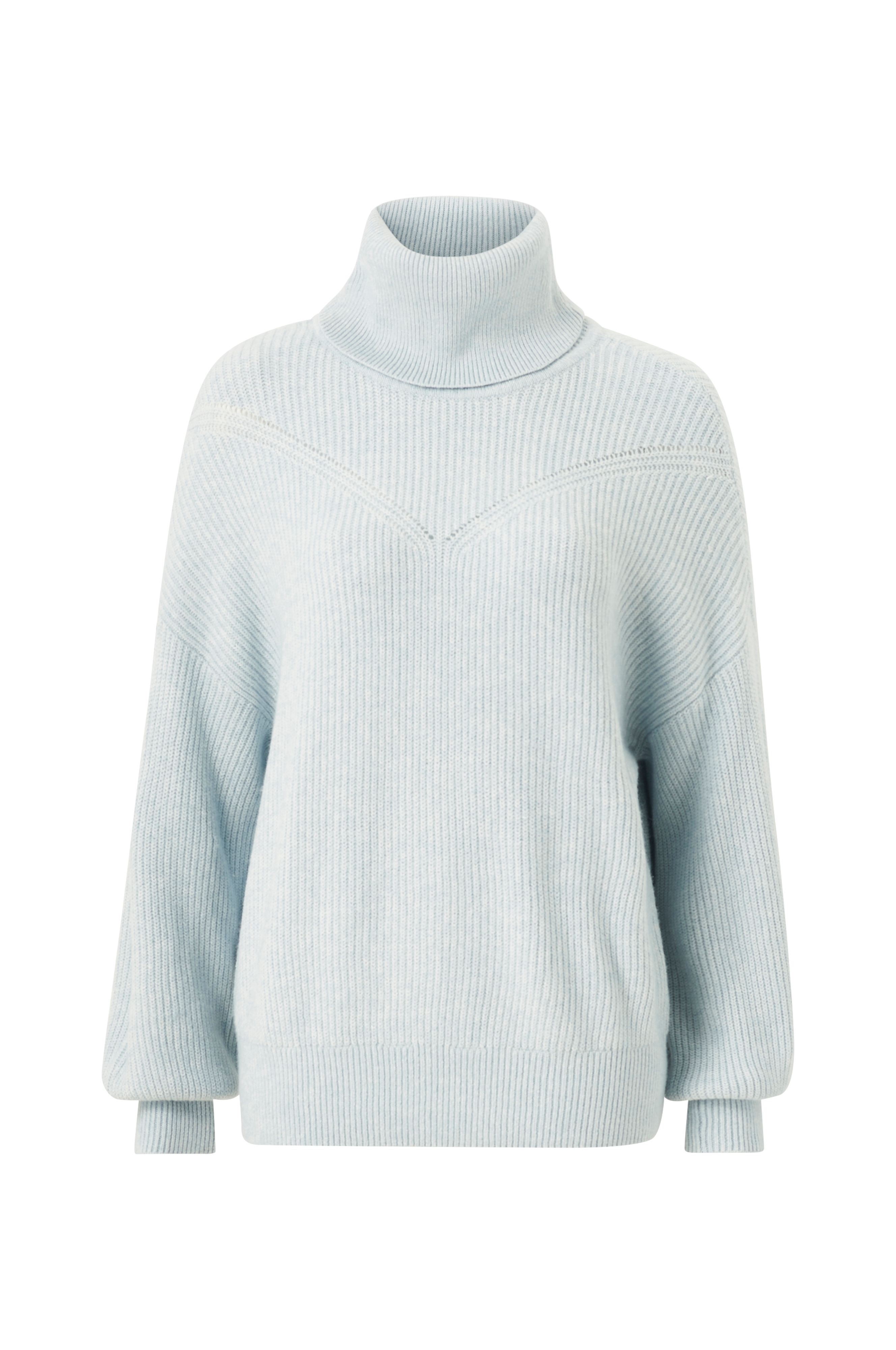 • Uformell modell• Høy, ribbestrikket krage• Utringet skulder med langt erme• Bred ribbestrikk i ermeslutten og på bunnen