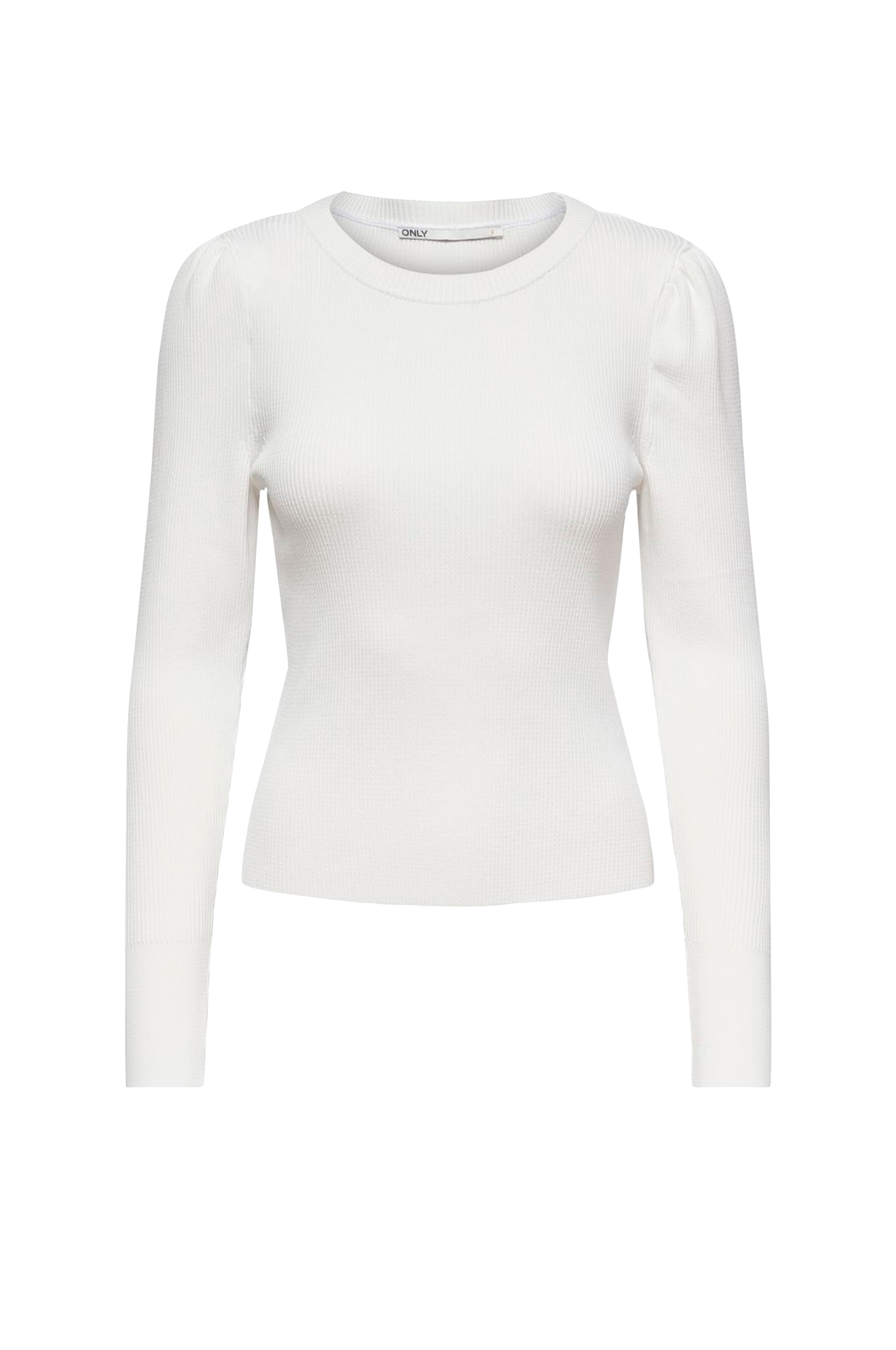 • Ribbestrikket genser• Rund halsringning• Bobleermer• Ribbet mansjetter i ermeslutten