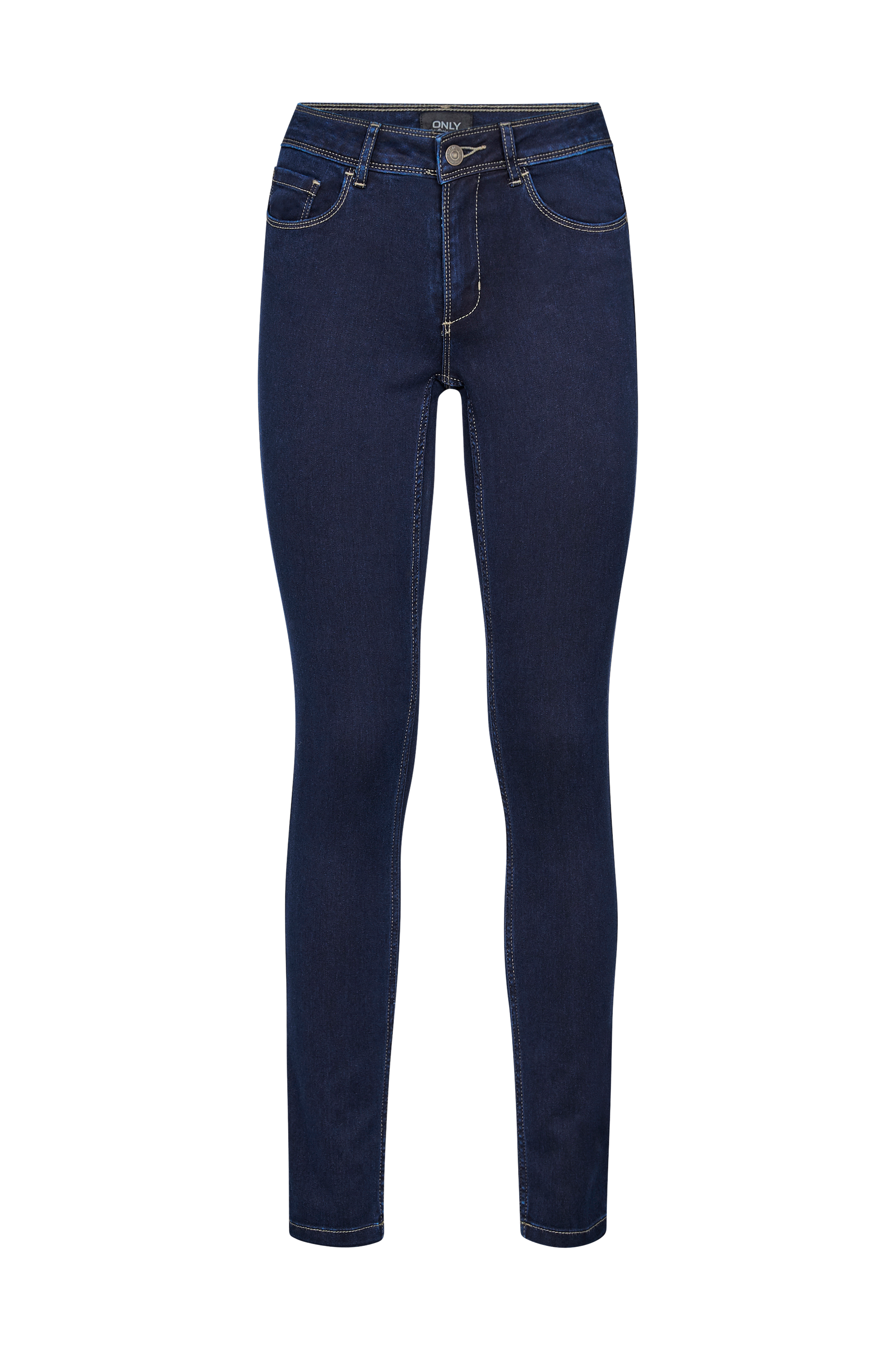 Jeans Royal Reg Skinny Fit fra Only er i deilig stretchdenim med smal passform. Femlommersmodell med dobbeltstukne jeanssømmer. Små nagler ved lommene. Glidelås i gylfen. Indre benlengde ca. 78 cm i str S/32. Fotvidde ca. 26 cm.