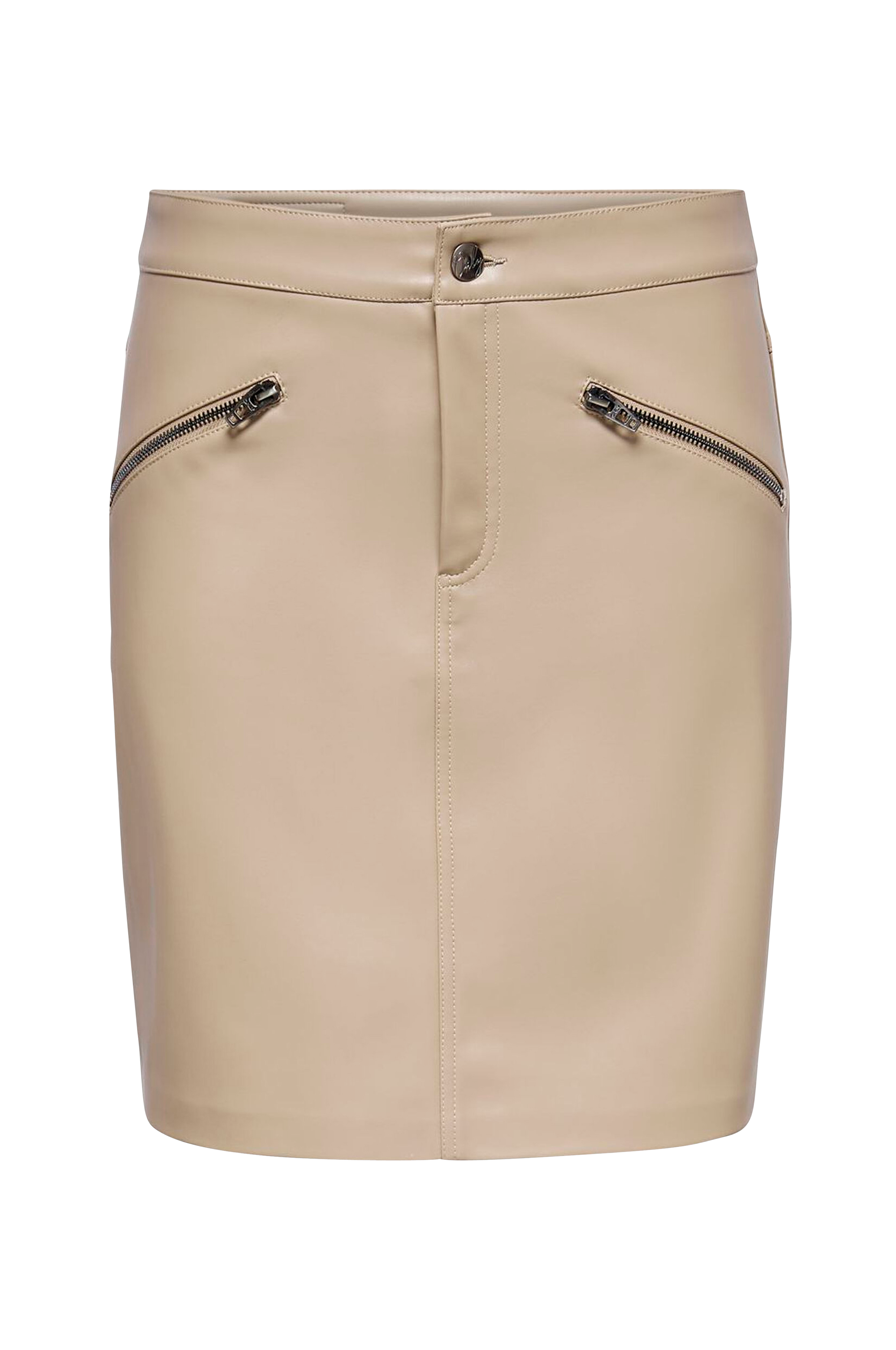 Skjørt onlHeide Faux Leather Skirt fra Only i kort, lett utsvingt modell i skinnimitasjon med stretch. Dekorglidelåser foran og gylf med glidelås og knapp. Lengde ca. 45 cm i str S.
