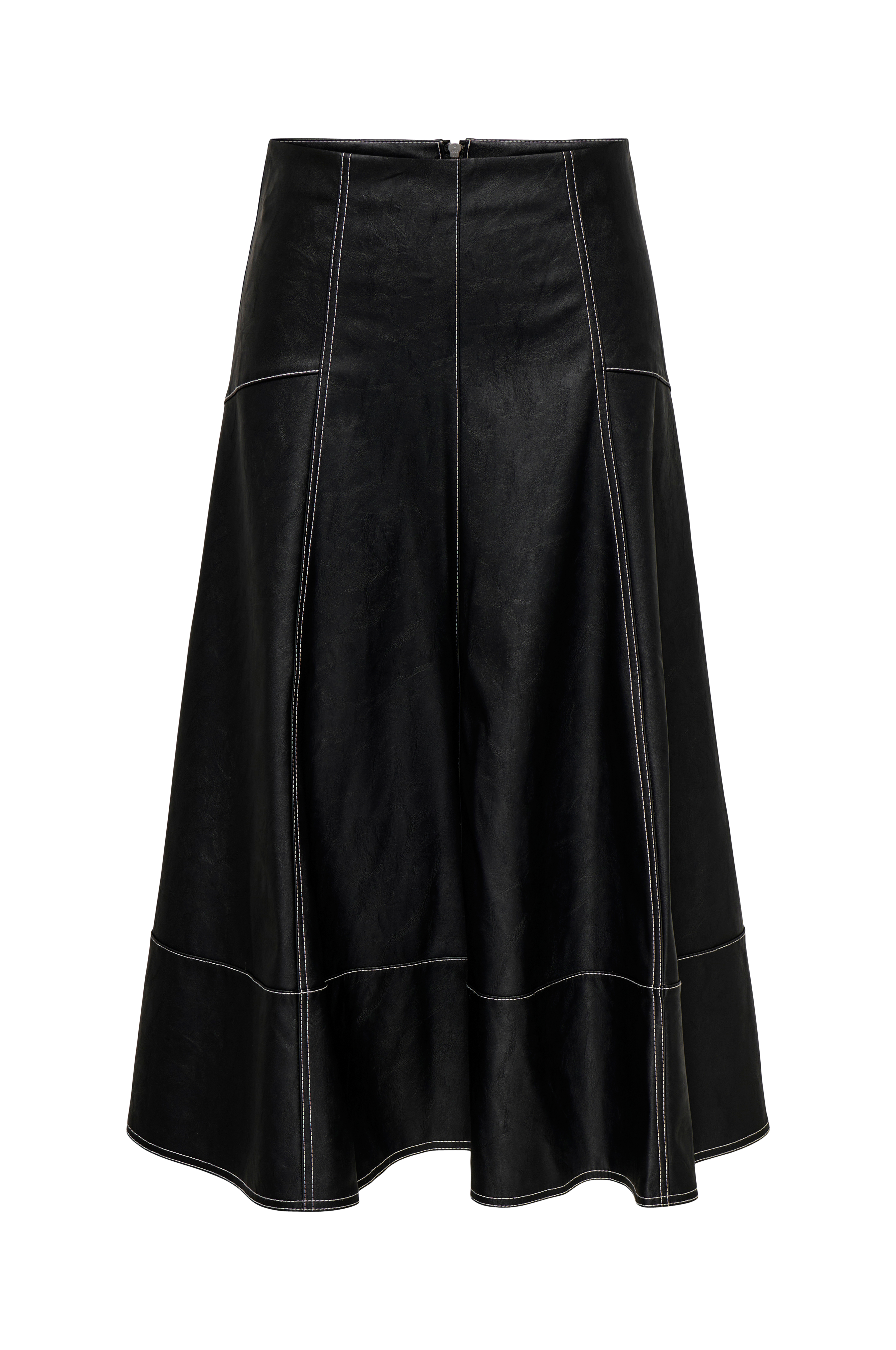 • Skjørt i skinnimitasjon• Glidelåslukking• Dekorative sømmer• Utsvingt nedre del• Lengde: 81 cm i størrelse S