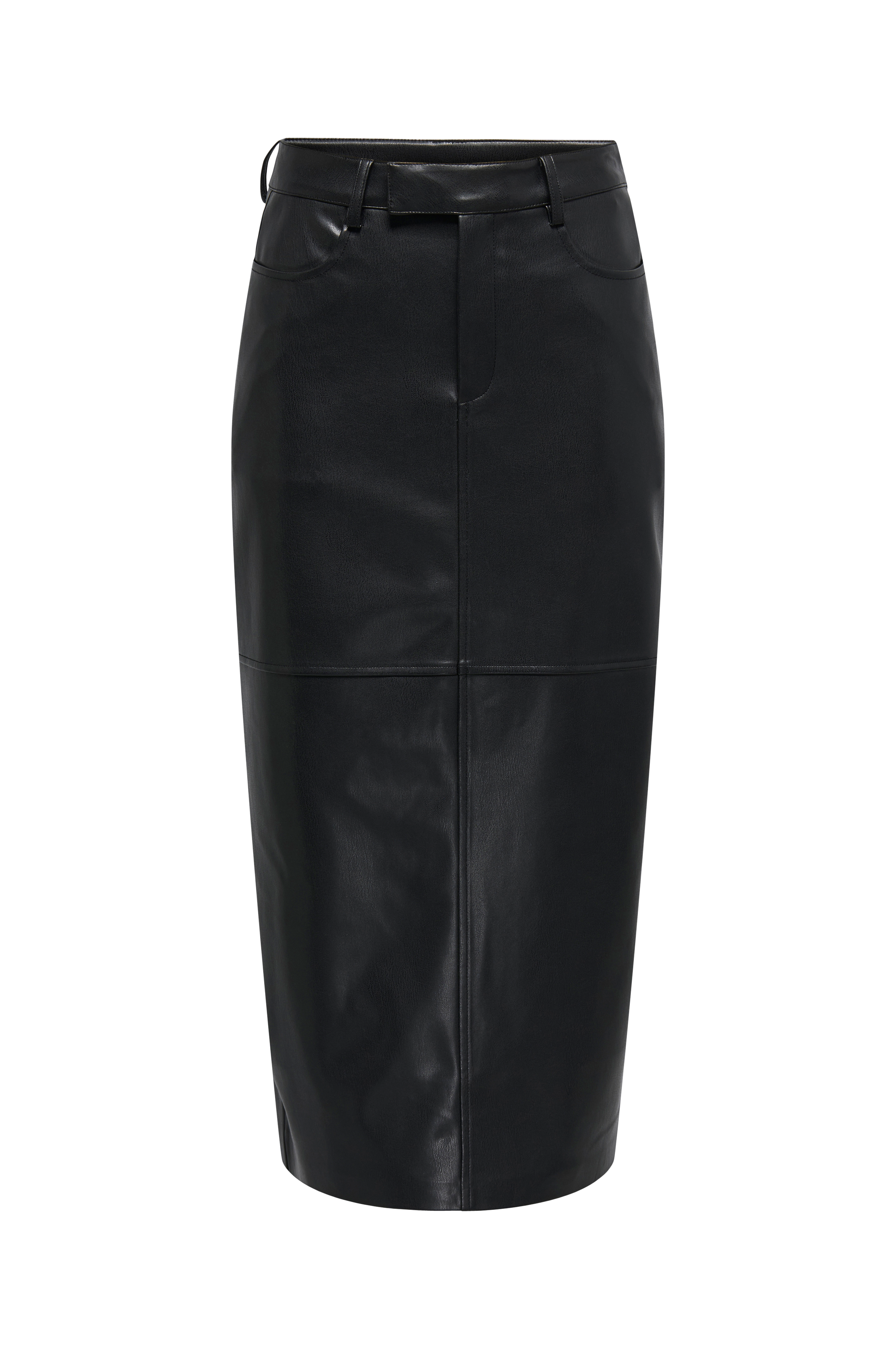 • Langt skjørt i skinnimitasjon• Frontlommer• Baklommer• Lynlås med hektelukning• Splitt nedover ryggen• Lengde: 86 cm i størrelse S