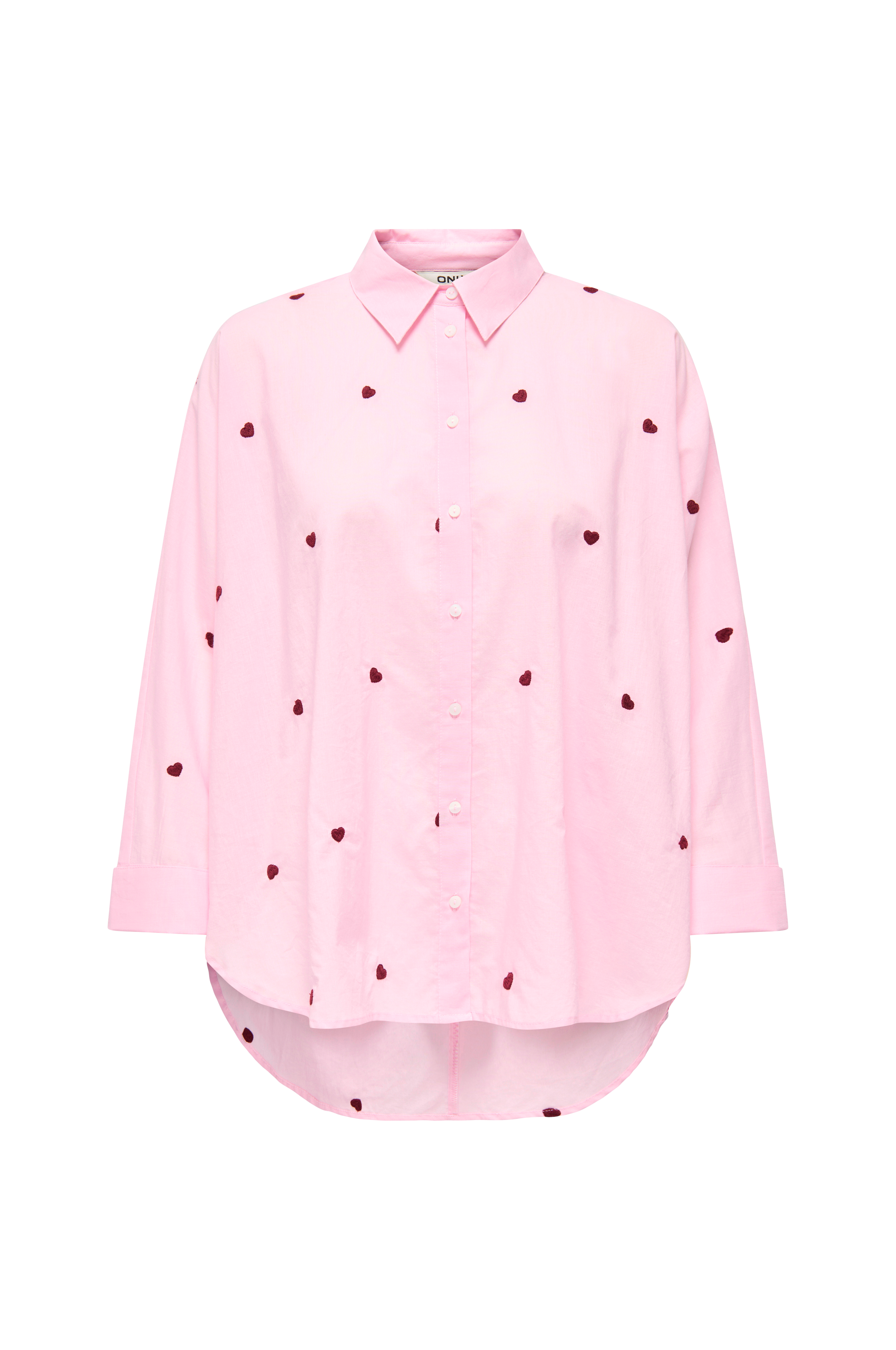 • Skjorte i bomull med broderte hjerter rundt• Ventilasjon nede i sidene• Lenger backing• Posete passform