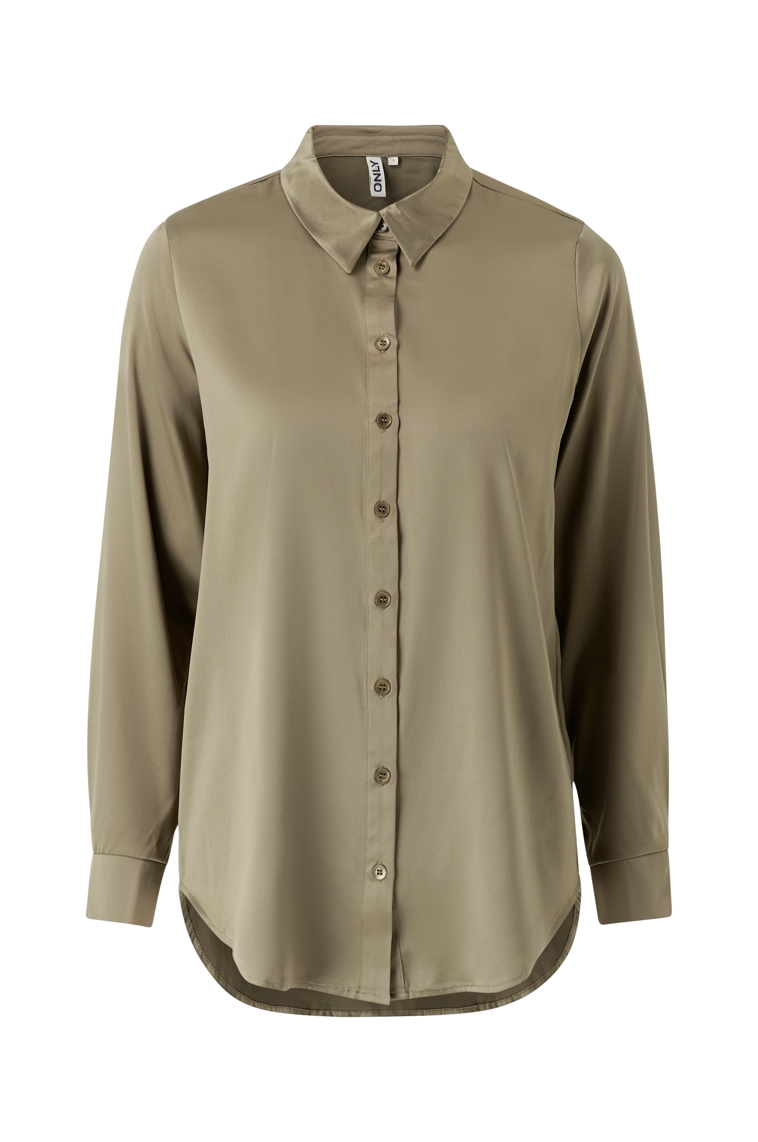 • Rett, uformell modell i sateng• Knappstolpe foran• Langt erme med mansjett• Avrundet hem