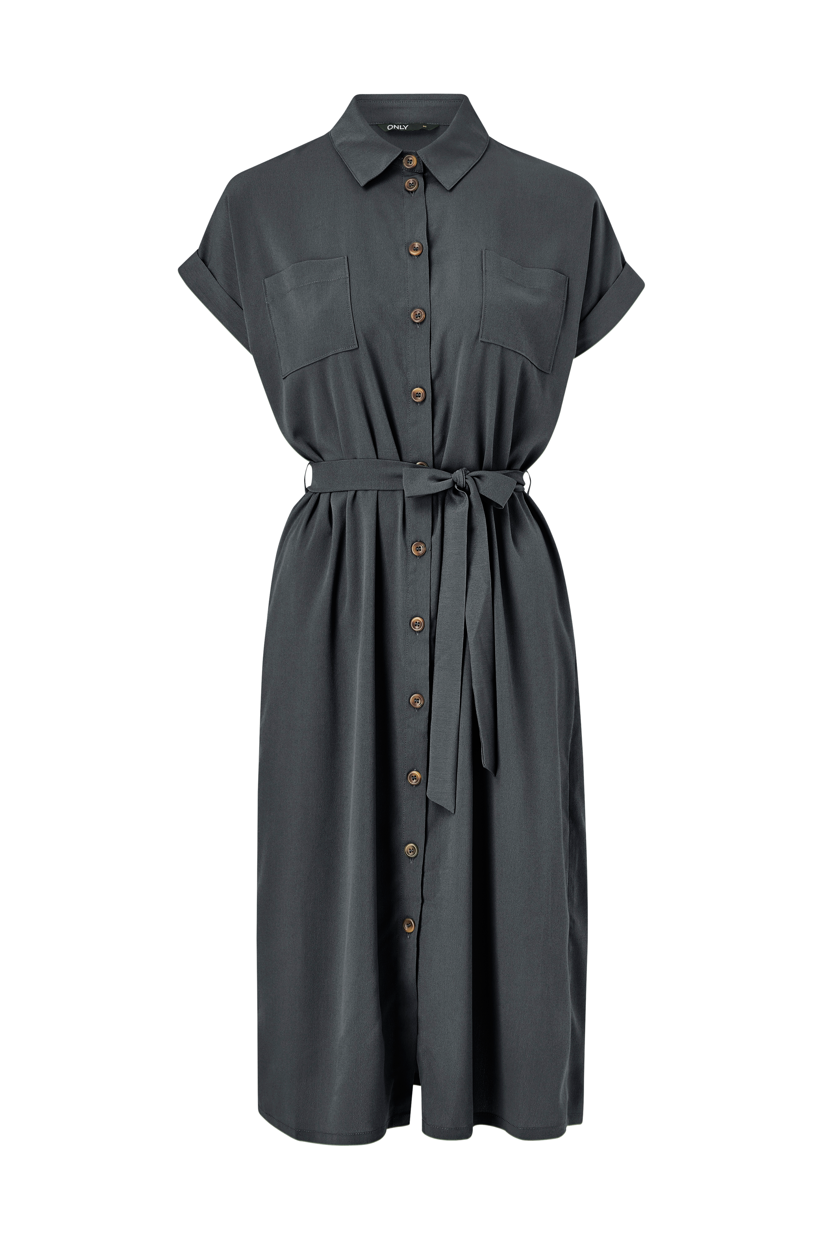 Skjortekjole onlHannover S/S Shirt Dress fra Only med knapper foran, to brystlommer og knytebelte i midjen. Korte, vide ermer med oppbrett. Lengde ca. 112 cm i str 36.