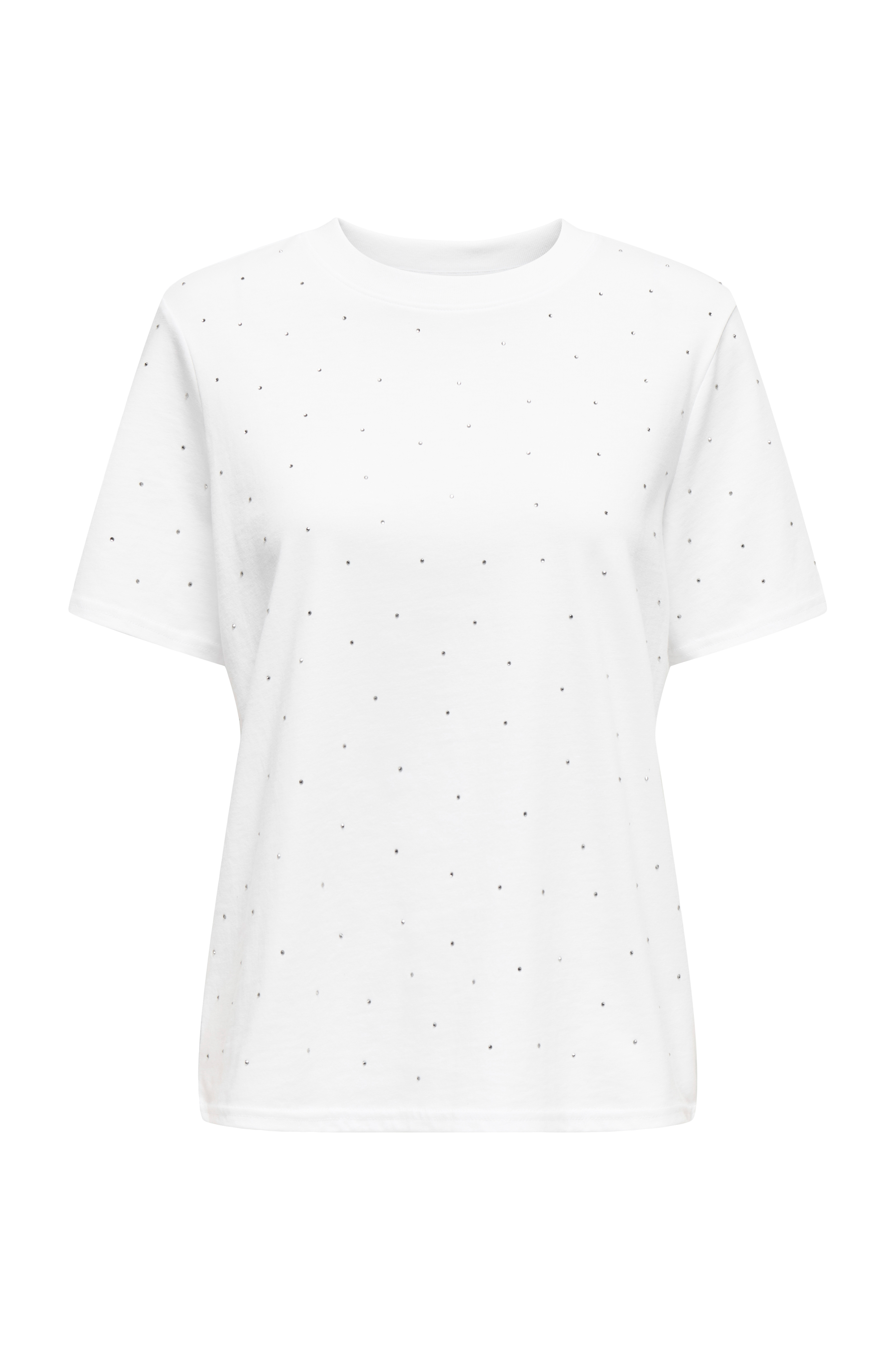 • T-skjorte i bomull• Rund, ribbet hals• Glitrende rhinstener foran