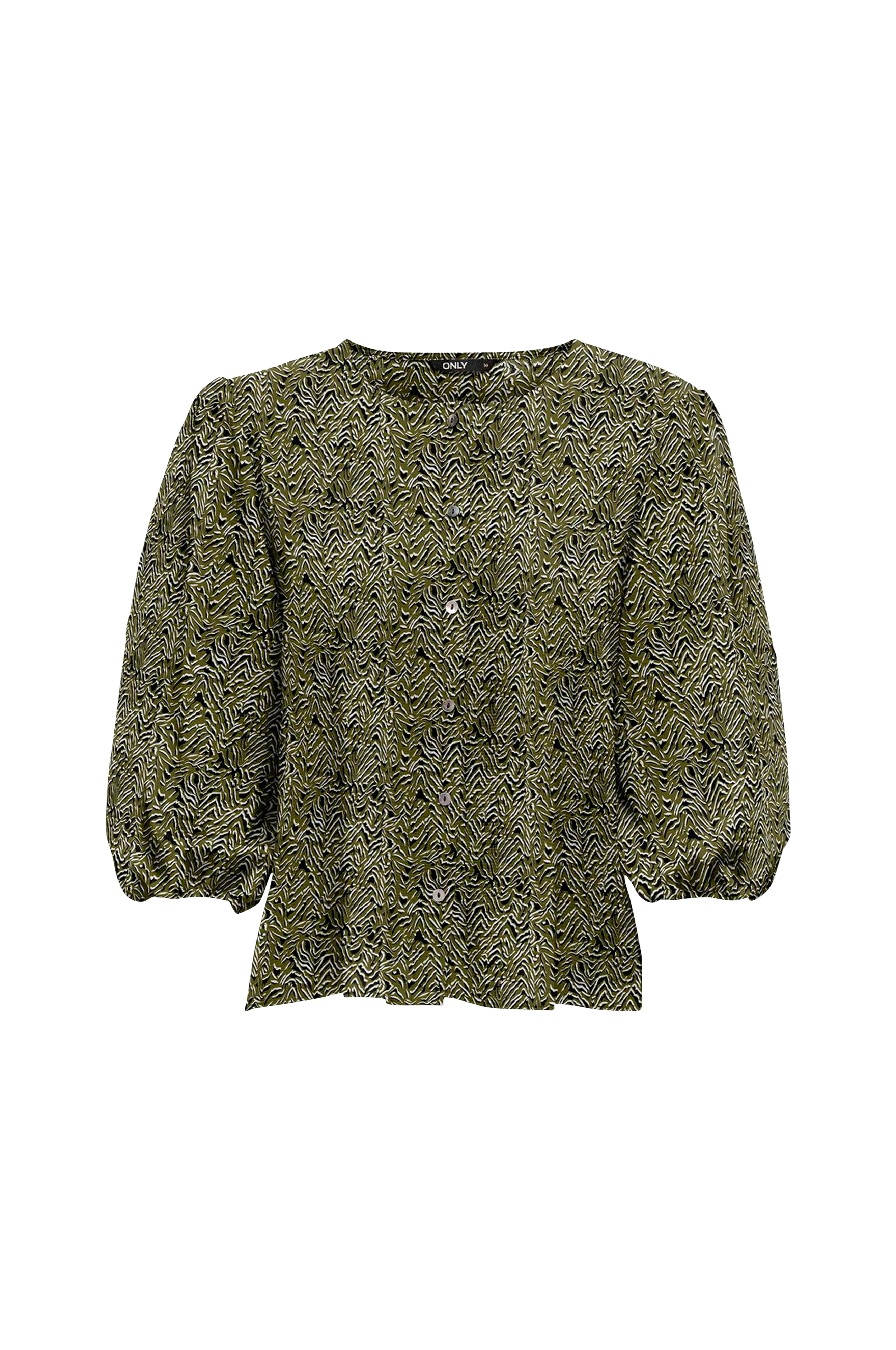 Topp onlNova Lux 3/4 Puff Sleeve Top fra Only. Rett modell med 3/4-lange puffermer med god vidde og rynker ved skulderen og innfelt strikk i ermekantene. Rund hals med smal fald, knepping hele veien foran.
