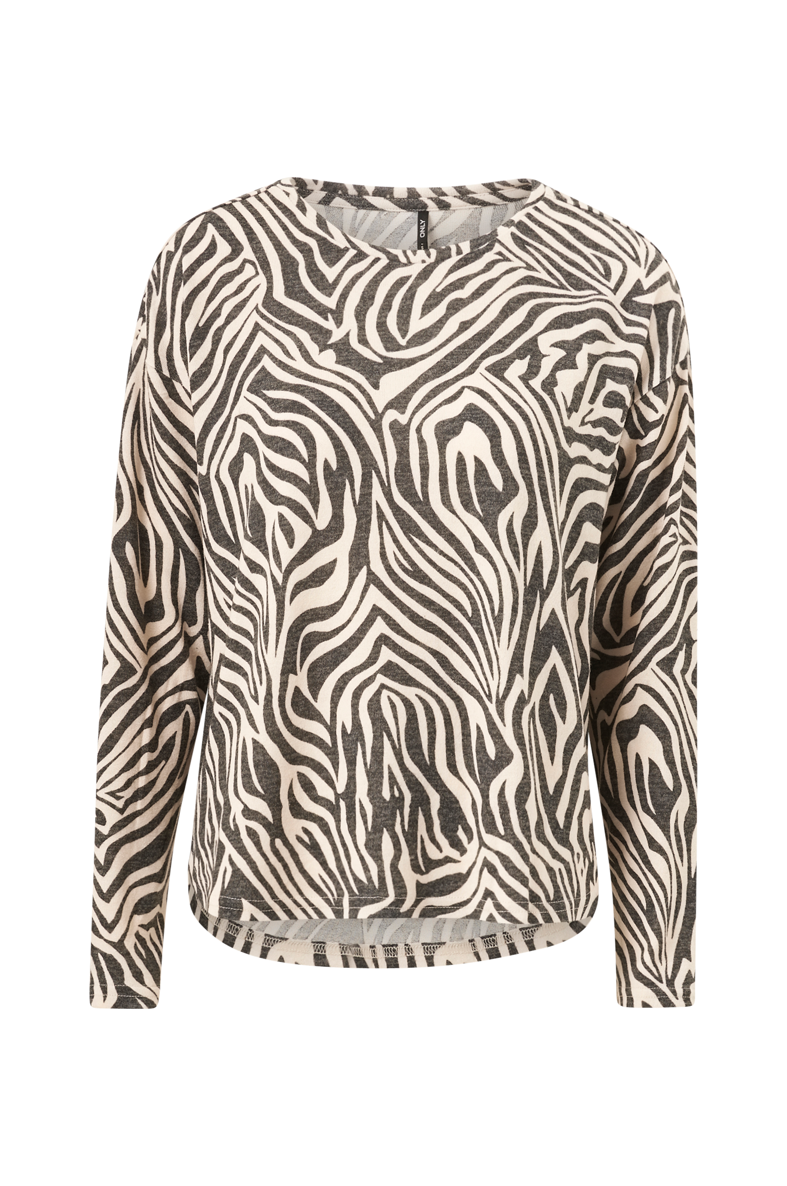 • Topp i mykt, mønstret jerseystoff• Lange ermer• Utringede skuldre• Avrundet hem