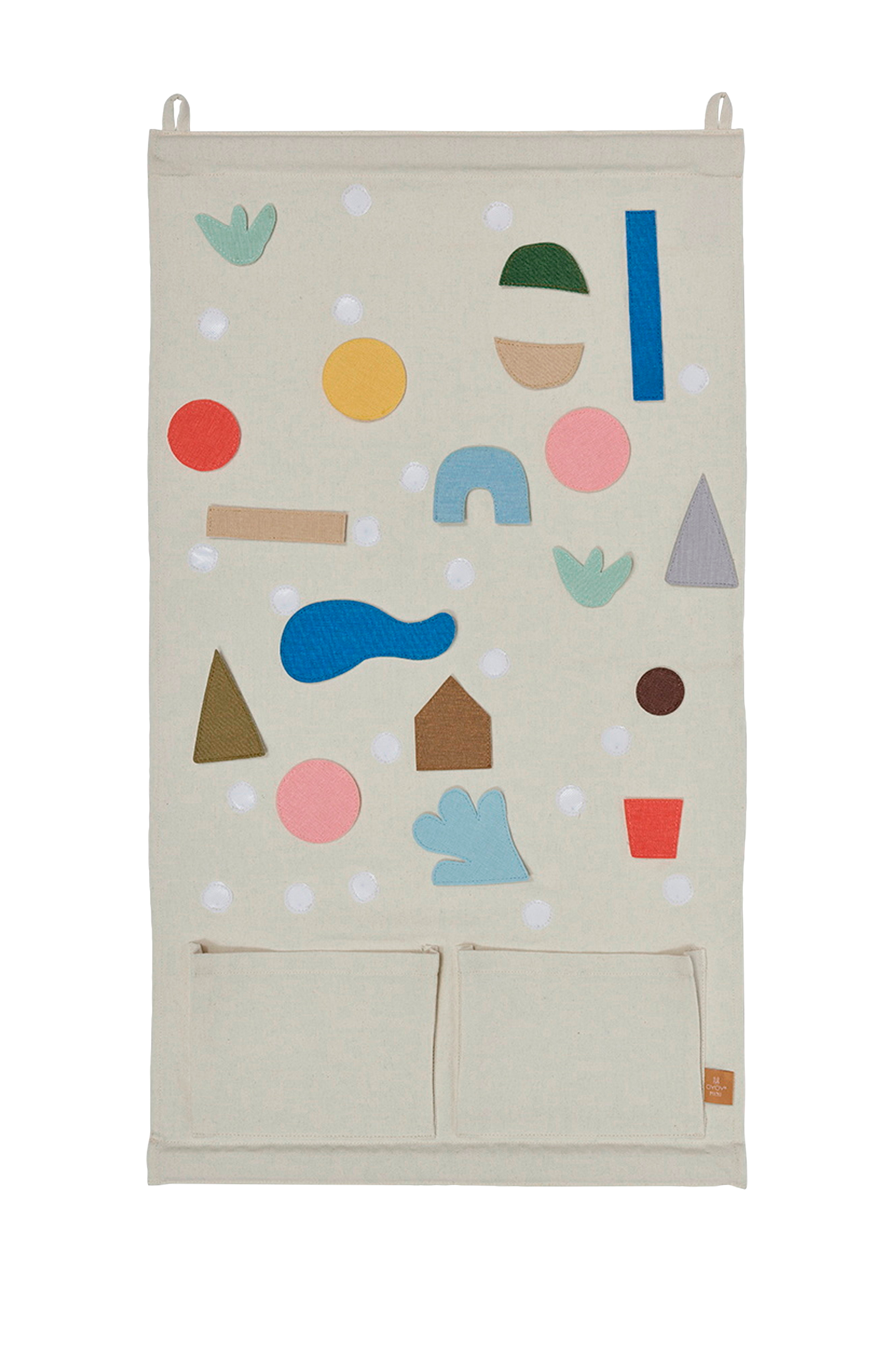 Den er laget av tekstil og designet med to lommer nederst for oppbevaring av løse deler, slik at den både tar hensyn til lek og ryddighet. Det er enkelt å henge det opp med de øverste løkkene - ideelt på en teleskopstang.