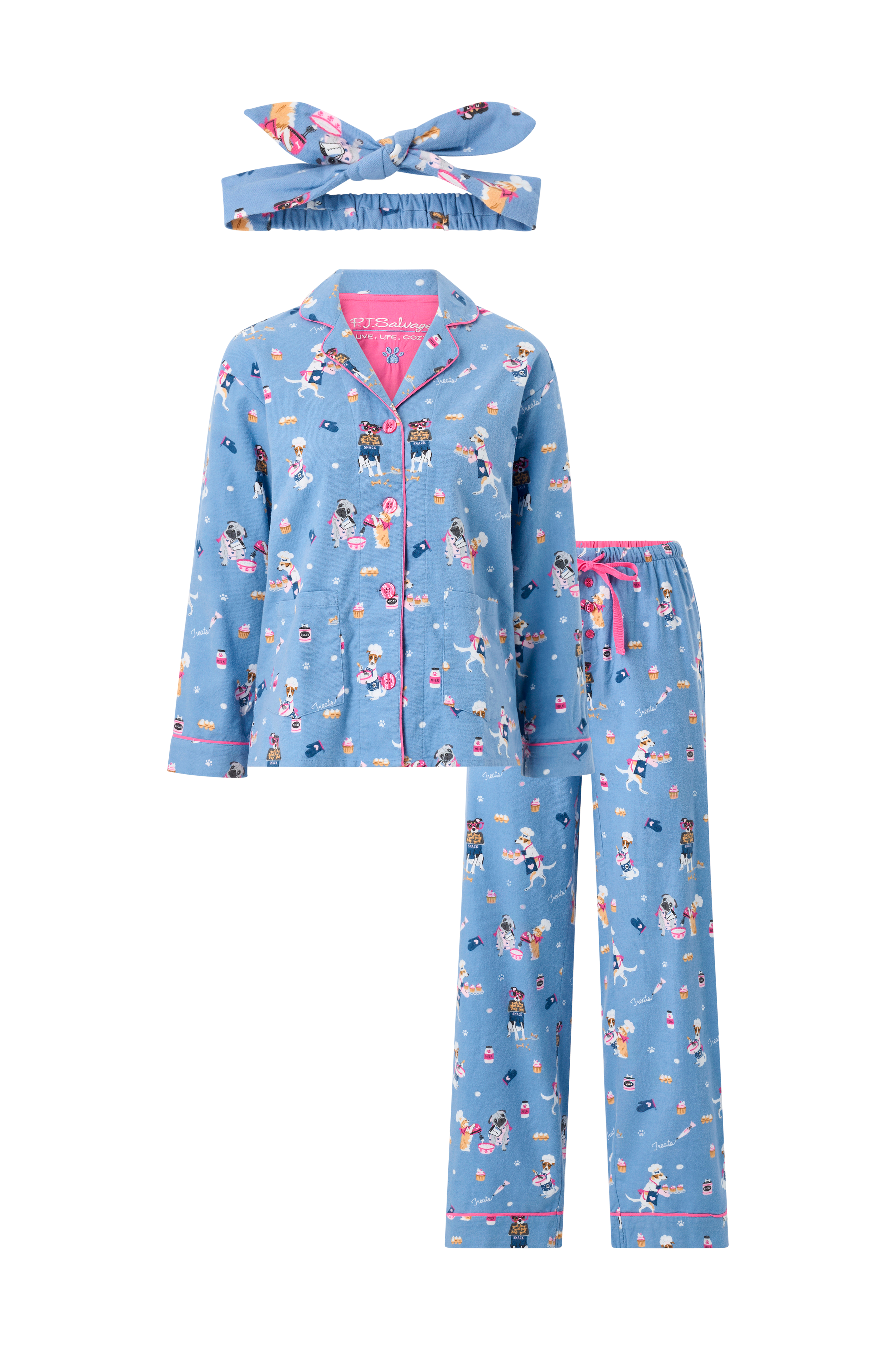 • 3-deltt, mønstret pysjsett• Mykt, koselig materiale• Skjorte med krage, jakkeslag, knappelukking og to lommer• Bukser med elastisk midje, snøring og knappelukking• Hårbånd med knutedetalj