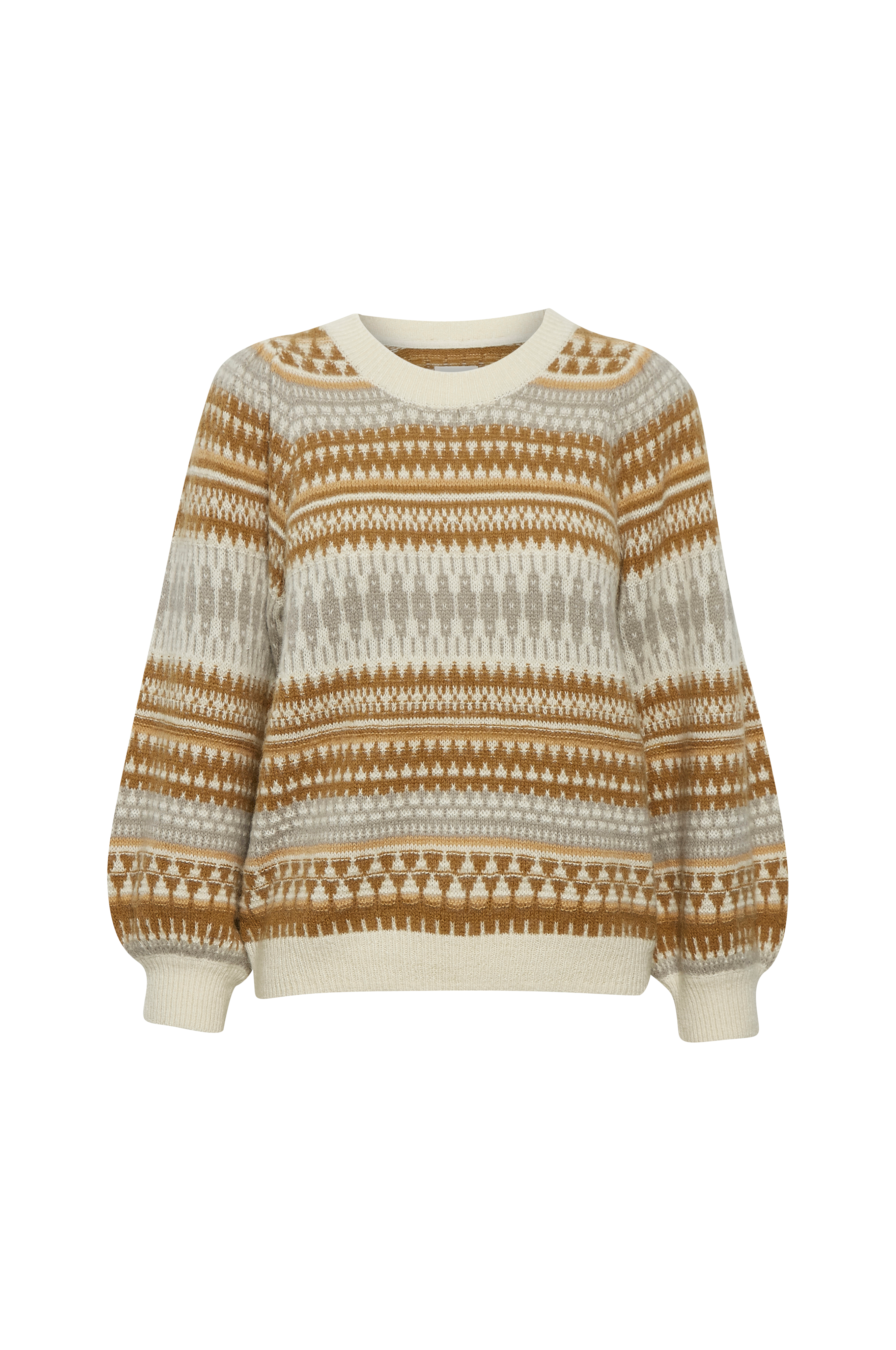 • Rett, mønsterstrikket modell • Rund, ribbestrikket hals • Bredt ballongerme • Ribbestrikk i ermeslutten og på bunnen • Produktet inneholder gjenvunnet materiale som er brukt for å redusere mengden avfall, samtidig som det ikke er brukt nye ressurser.