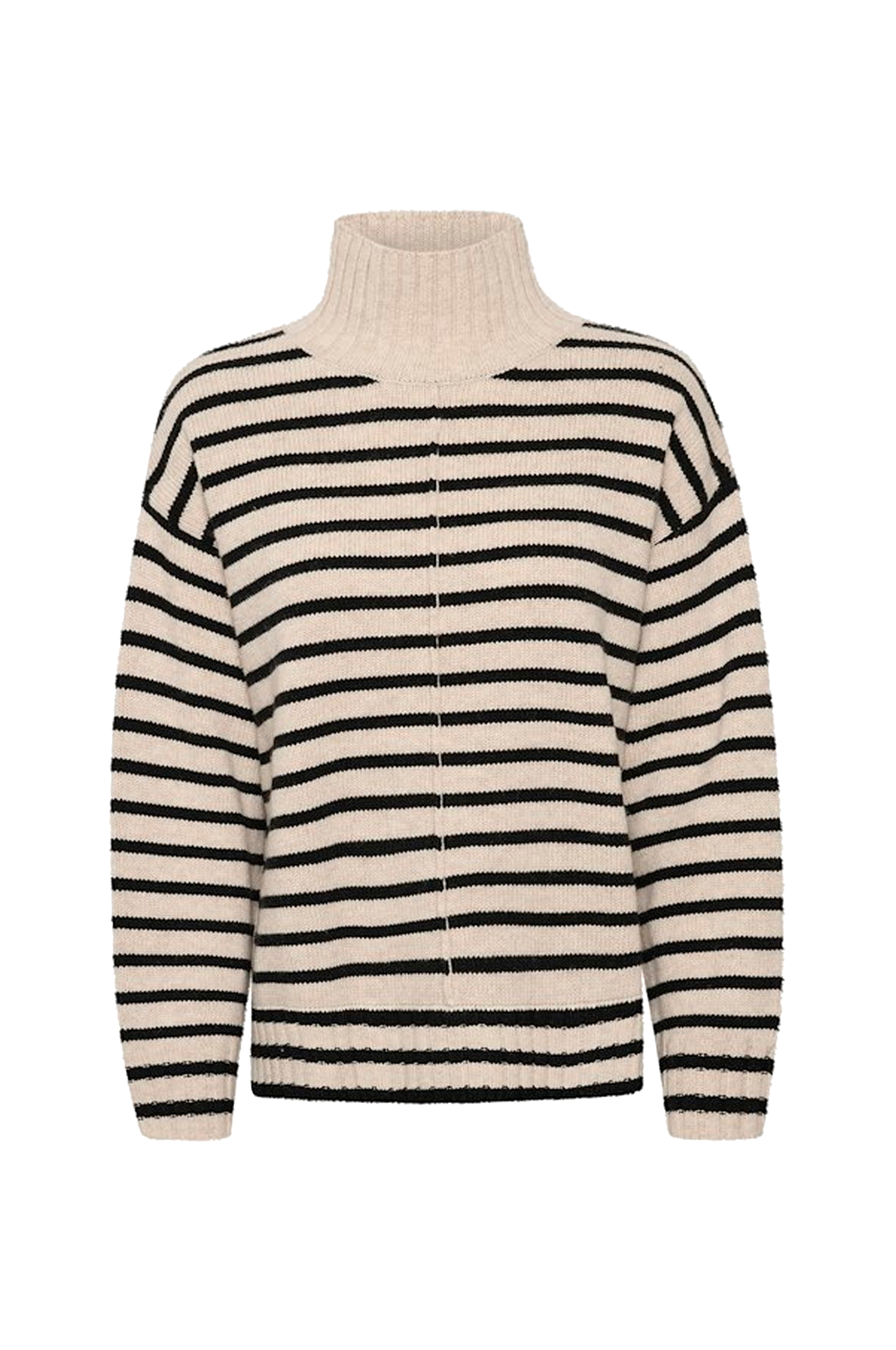 • Strikket genser i ullblanding• Høy, ribbet krage• Langsgående søm midt foran• Ventilasjon nede i sidene• Lenger backing• Ribbestrikk i ermeslutten og på bunnen