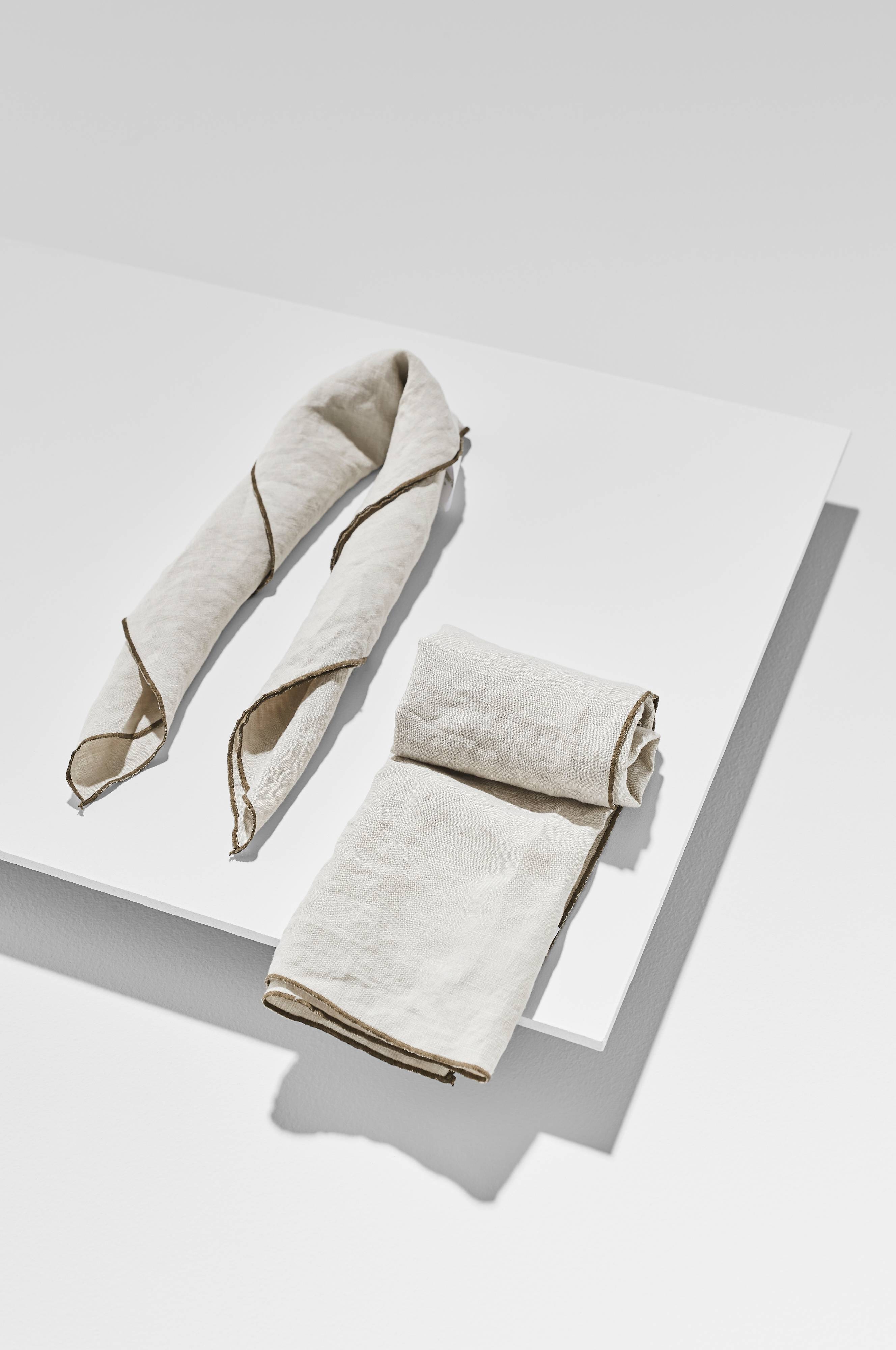 To servietter i lin i et sofistikert fargevalg. Servietter i lin gir en naturlig og behagelig følelse når du serverer god mat. Bonne-kolleksjonen er i en vasket lin-kvalitet fra Frankrike som føles helt riktig. Den er myk, smidig og behagelig, 165 gram/m². Kantene har en kontrastfarget overlocksøm hele veien rundt. Serviettene er enkle å ta vare på og blir bare vakrere med tiden, uansett om du velger å stryke dem eller bruke dem vakkert ustrøket. Du kan blande de vakre fargenyansene akkurat som du føler for, alle farger passer sammen.