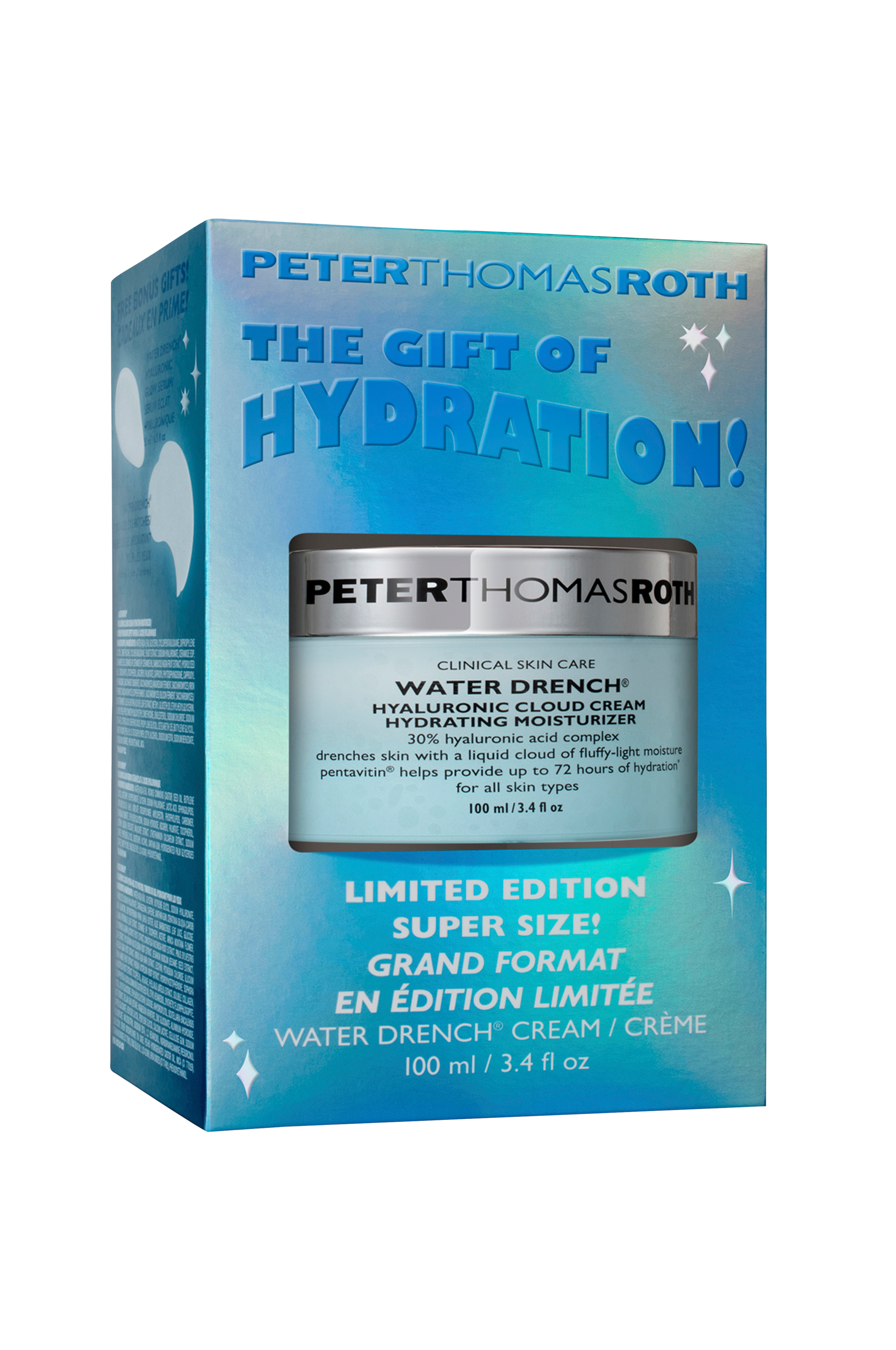 Limited edition-sett med en ekstra stor Water Drench® Cloud Cream (100 ml) samt to bonusgaver: Water Drench® Glow Serum (15 ml) og Hydra-Gel Eye Patches (1 par). Water Drench® Hyaluronic Cloud Cream Hydrating Moisturizer er en intensiv fuktighetsgivende ansiktskrem med 30% Hyaluronic Acid Complex som bidrar til å fylle ut fine linjer og rynker med fukt. Water Drench® Hyaluronic Glow Serum og Water Drench® Hyaluronic Cloud Hydra-Gel Eye Patches gir huden og øyekonturen et fuktet og mer ungdommelig utseende.