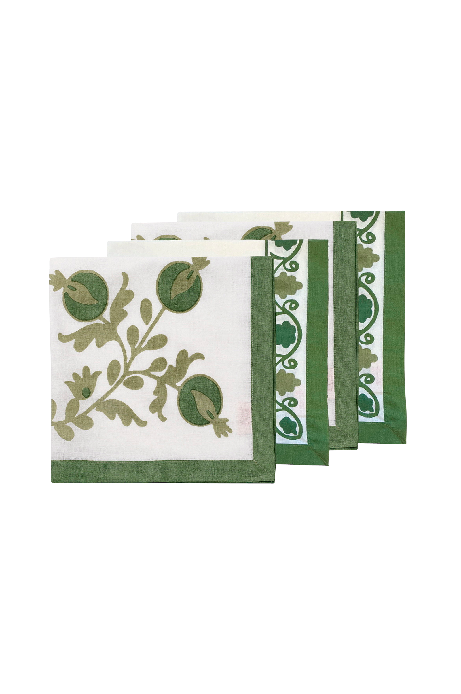 Våre Suzani servietter gir farge og håndverk til borddekkingen din. Inspirert av tradisjonelle folkemønstre og håndtrykt i Jaipur. Med en blanding av nordisk nostalgi og indisk kunsthåndverk skaper disse serviettene en unik setting som passer både til hverdag og fest. Serviettene selges i sett med fire, med to varianter av trykket i hver pakke, og er perfekte for å sette et sjarmerende og fargerikt preg på bordet ditt