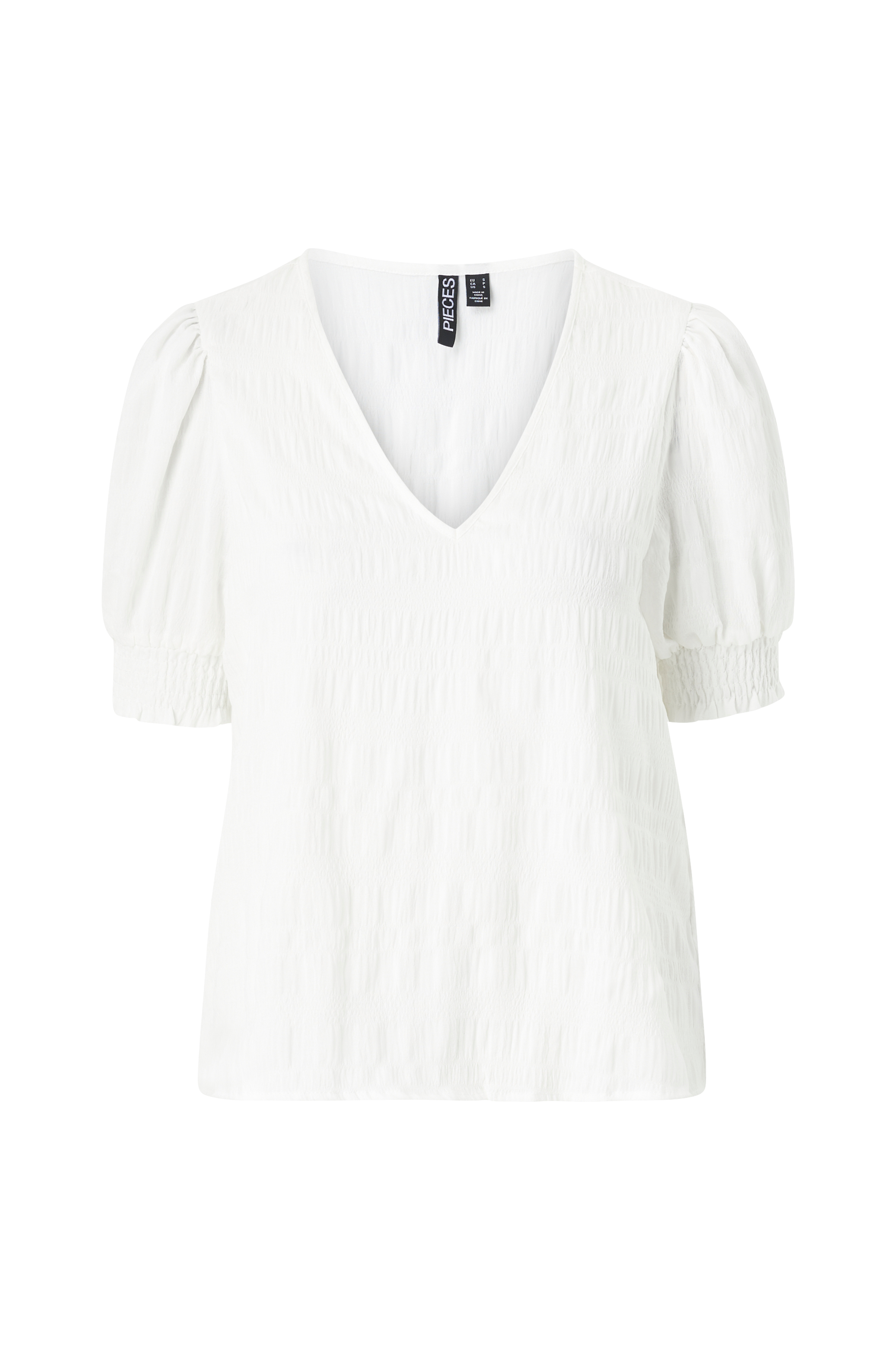 • V-hals snitt• Korte bobleermer med vaffelsøm i ermeslutten• Vevd kvalitet med strukturmønster