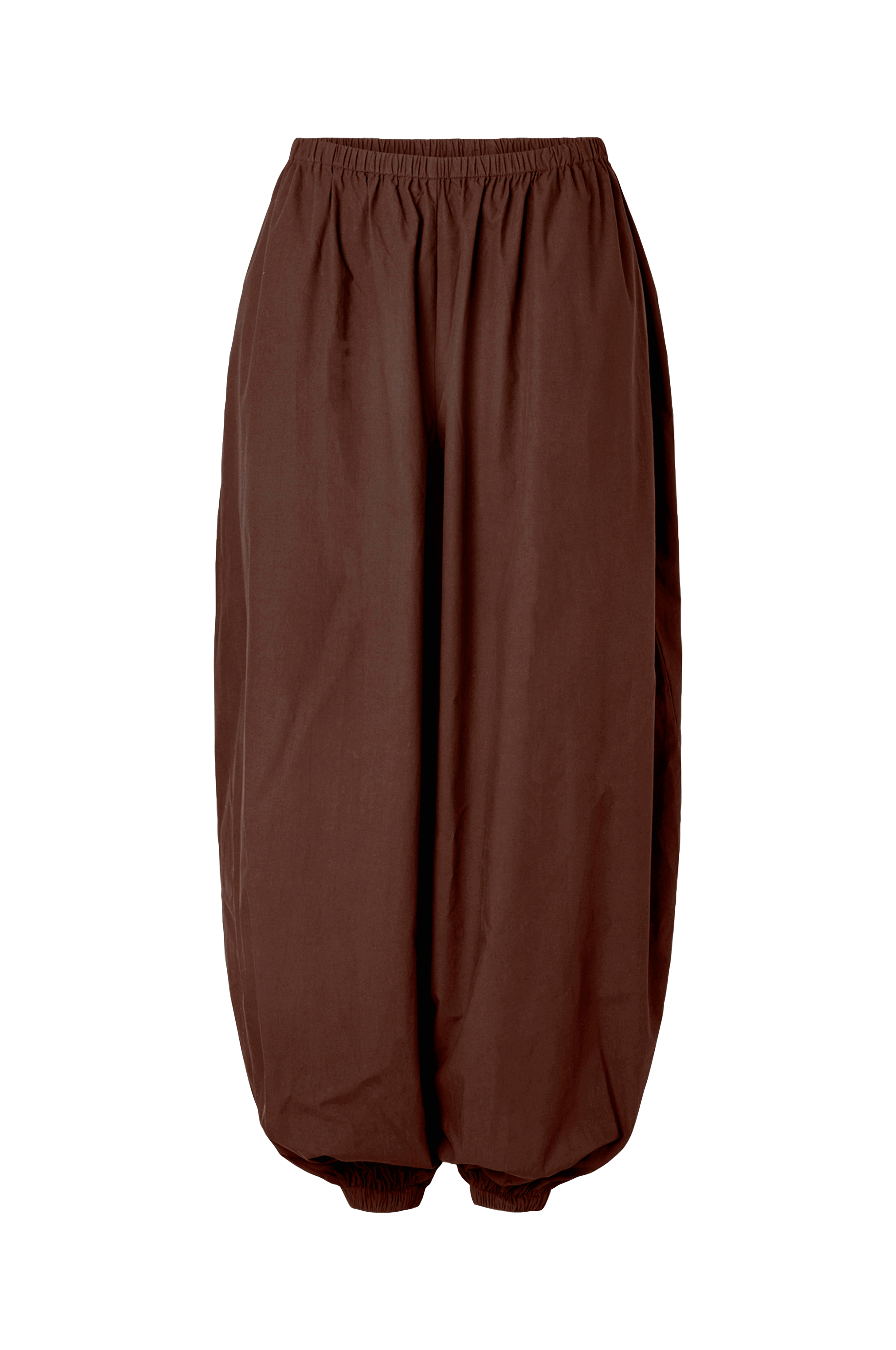 • Tynne bukser i bomull• Elastisk midje• Sidelommer• Ekstra vide buksebein• Gummistrikk i enden av benet• Løs passform• Indre benlengde: 76 cm i størrelse S