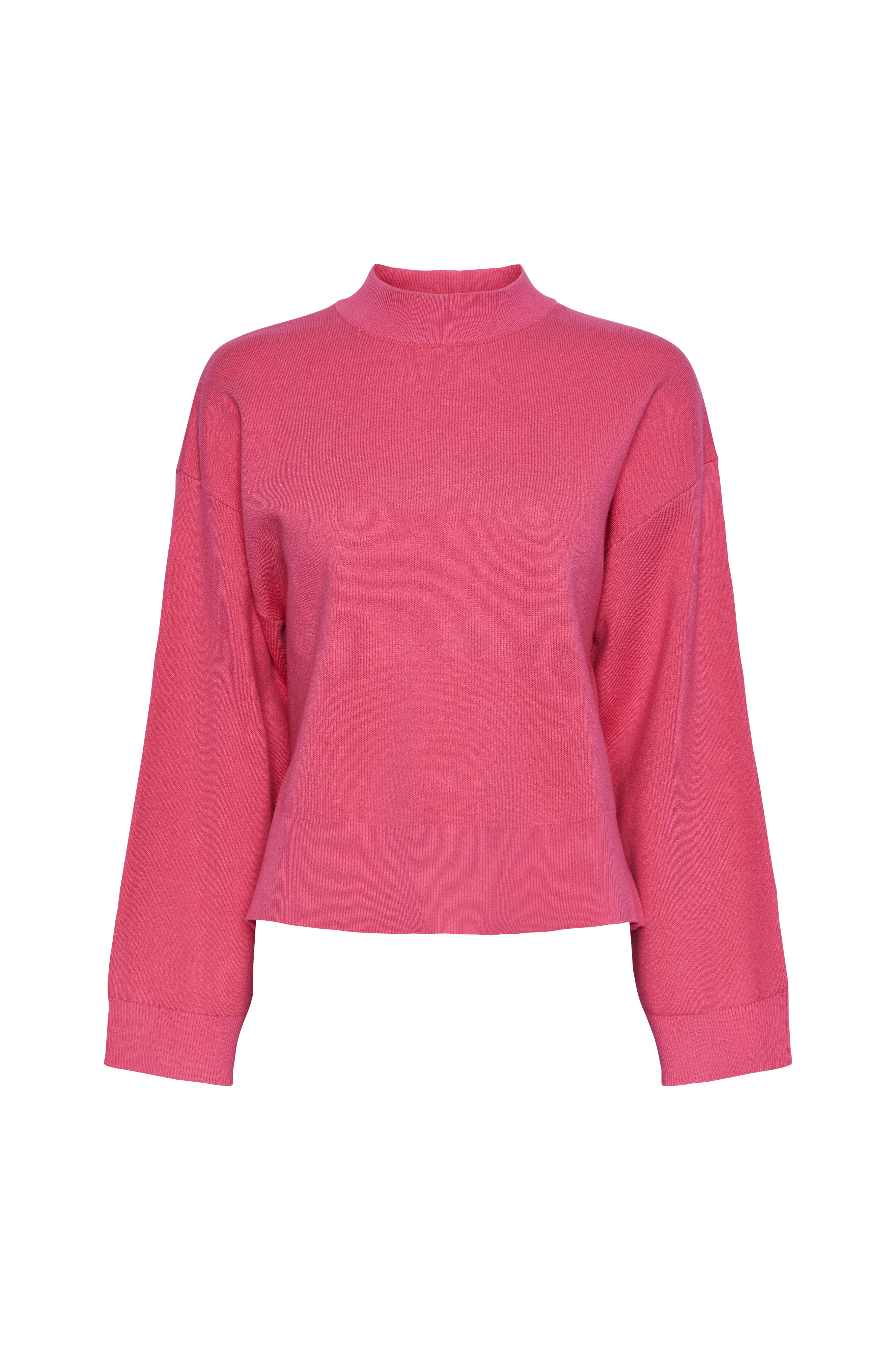 • Strikket genser• Rund, ribbet, høy hals• Utringede skuldre• Splitt nede i sidene• Ribbestrikk i ermeslutten og på bunnen