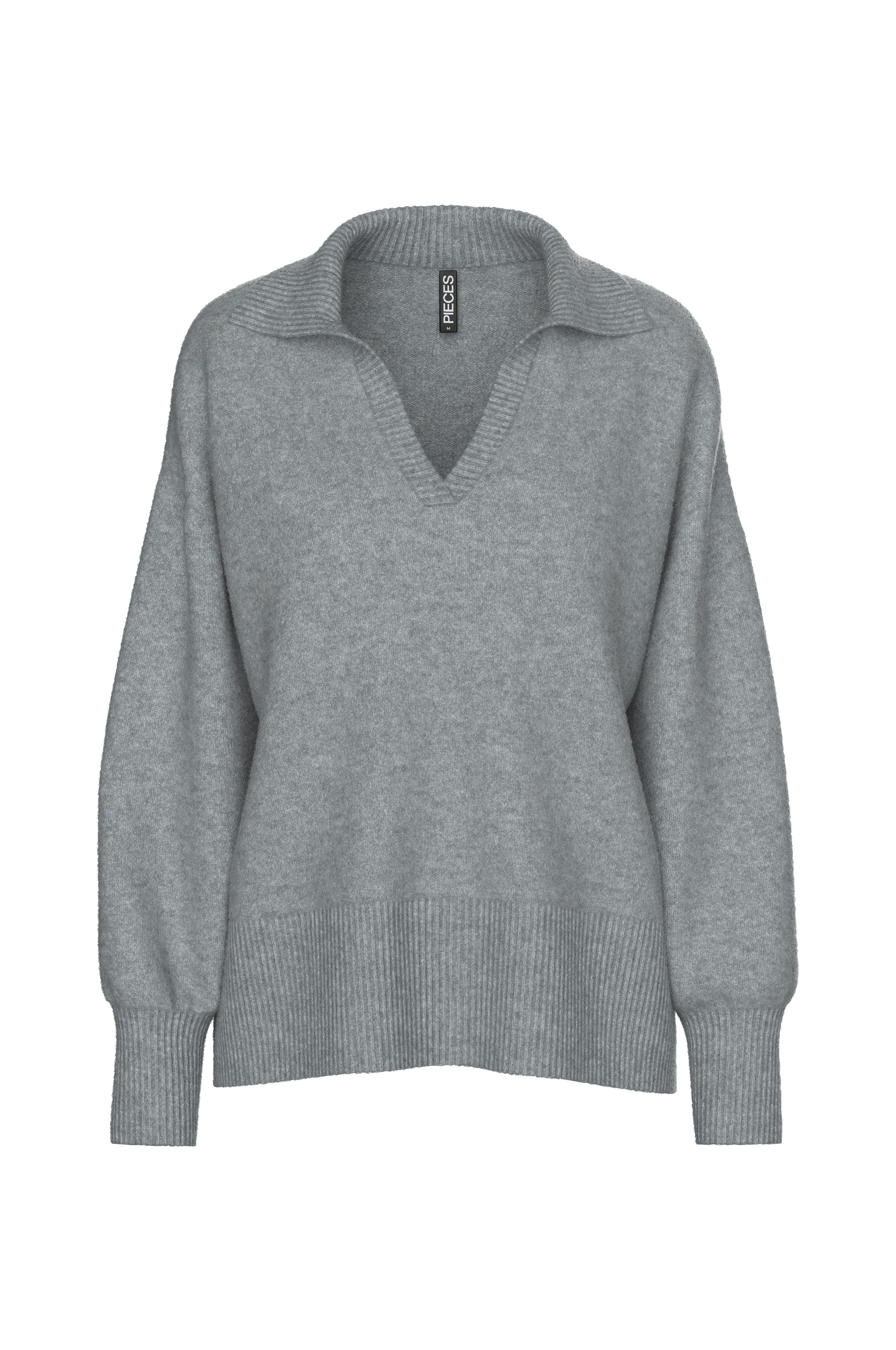 • Strikket genser i myk ullblanding• Ribbet krage• V-formet hals• Bred ribbestrikk i ermeslutten og på bunnen
