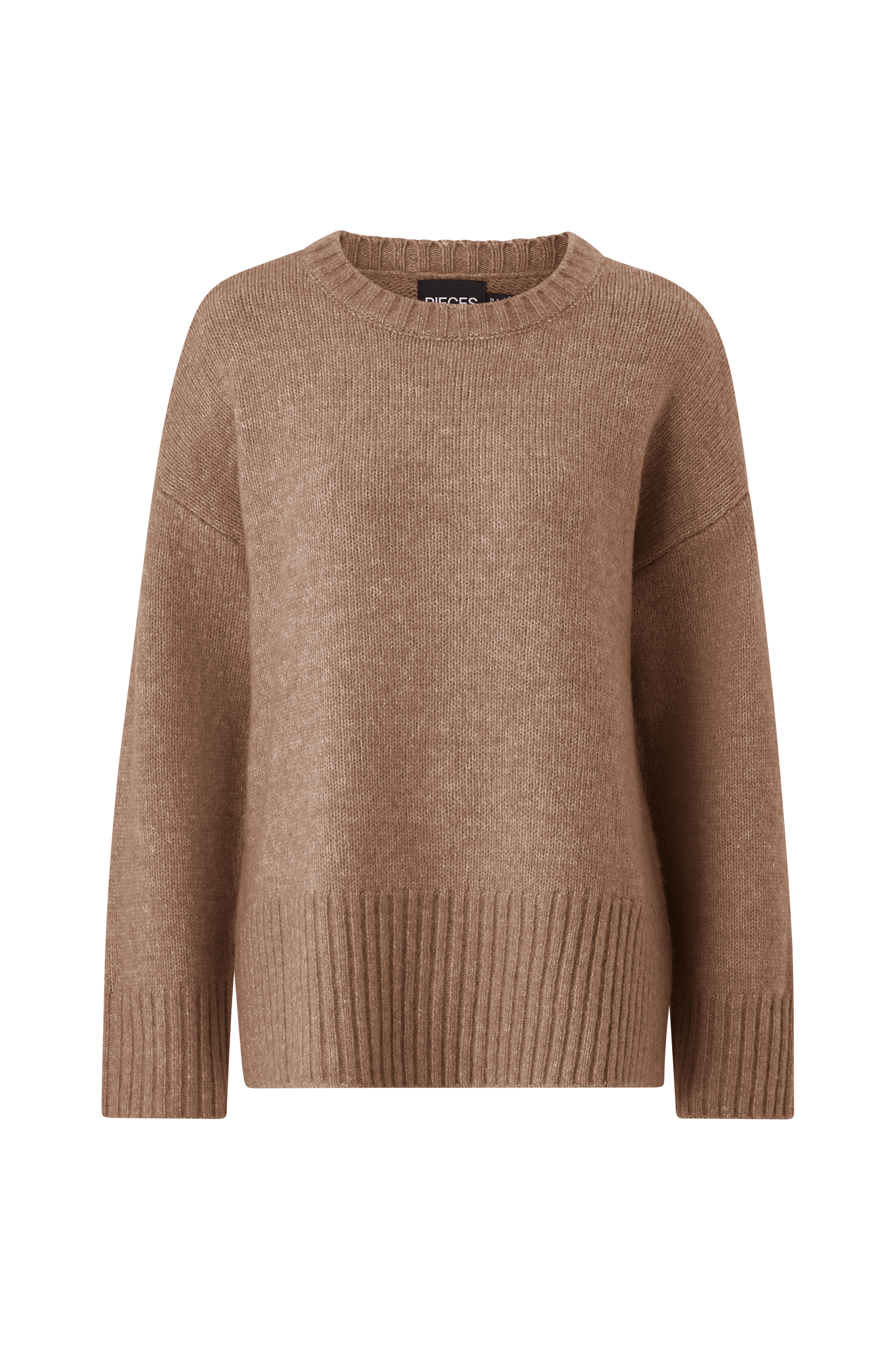 • Strikket genser• Litt lengre modell• Utringede skuldre• Ribbestrikk i ermeslutten og på bunnen• Splitt nede i sidene