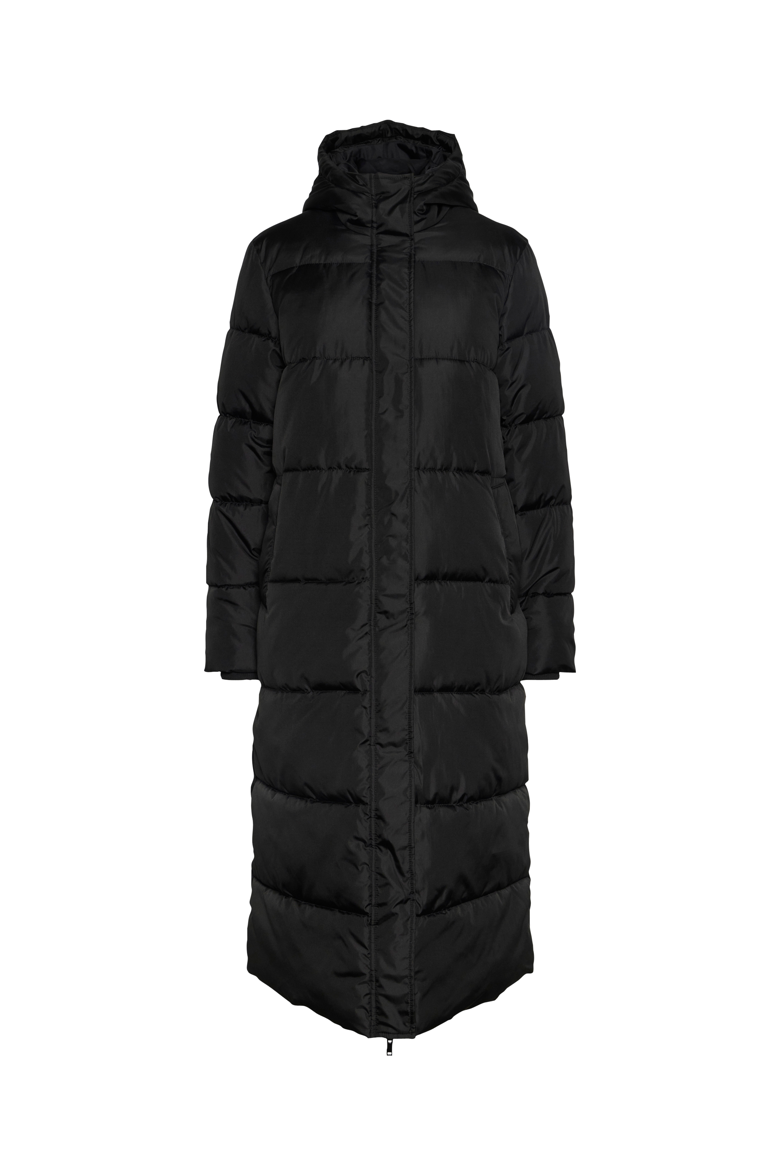 • Vattert, polstre pufferjakke • Fast hette • Høy krage • To-veis glidelås • Sidelommer • Klafflomme over glidelåsen med trykknapper • Lengde: 116 cm i størrelse S
