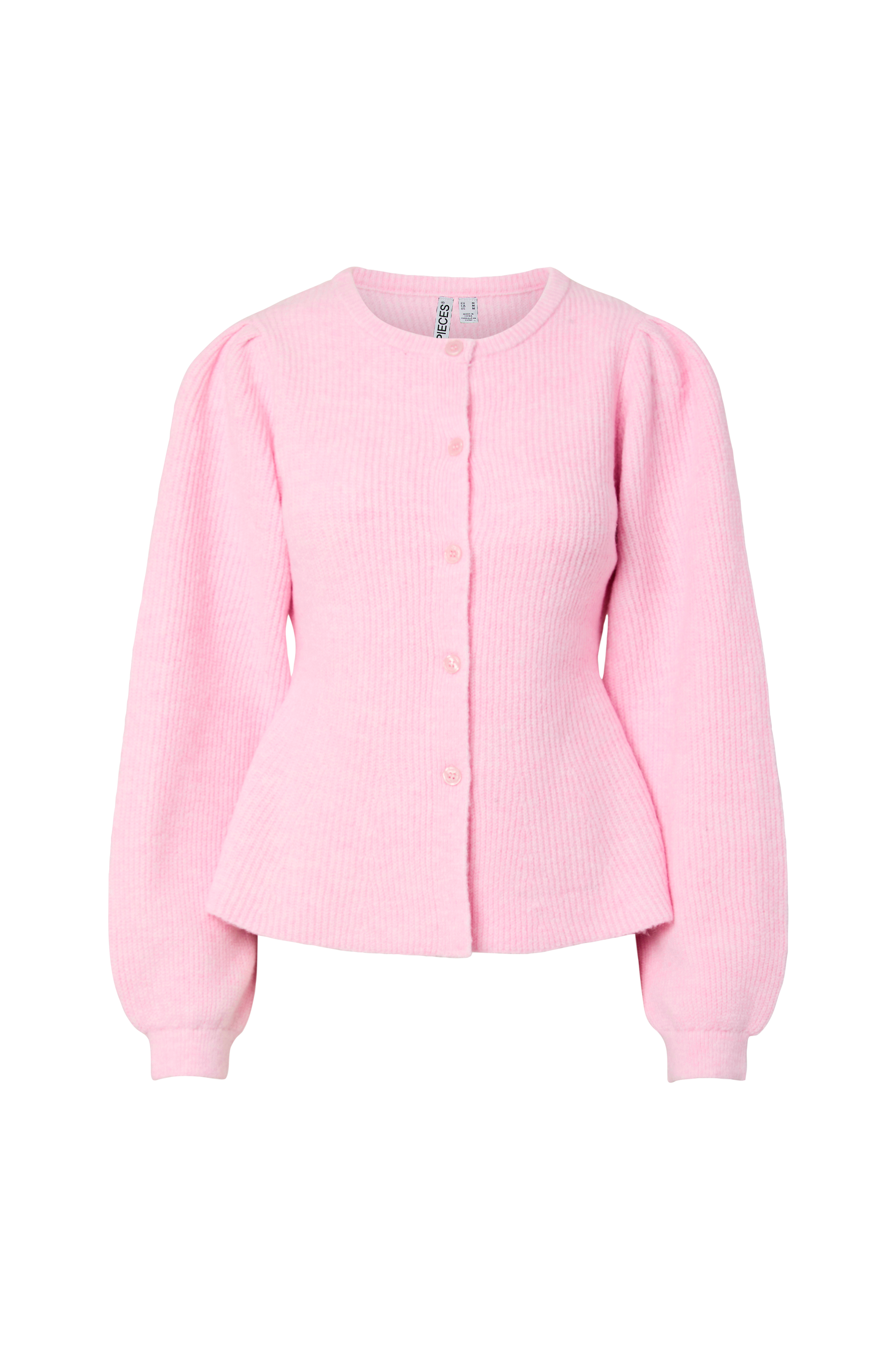 • Myk, ribbestrikket kardigan• Rund, ribbet hals• Lukking foran• Lange ballongermer• Ribbestrikk i ermeslutten og i nedre kant• Utsvingt nedre del