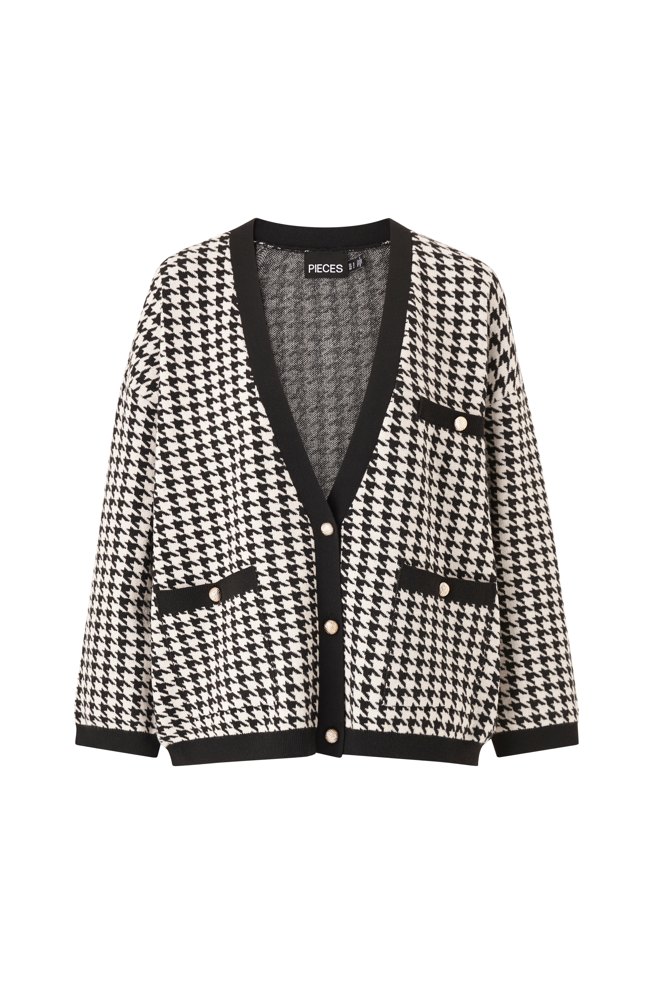 • Strikket kardigan• Oversizemodell• V-hals snitt• Runde metalliske knapper med preget mønster• To lommer med knapp• Tynne, ribbede kanter i ermeslutten og på bunnen