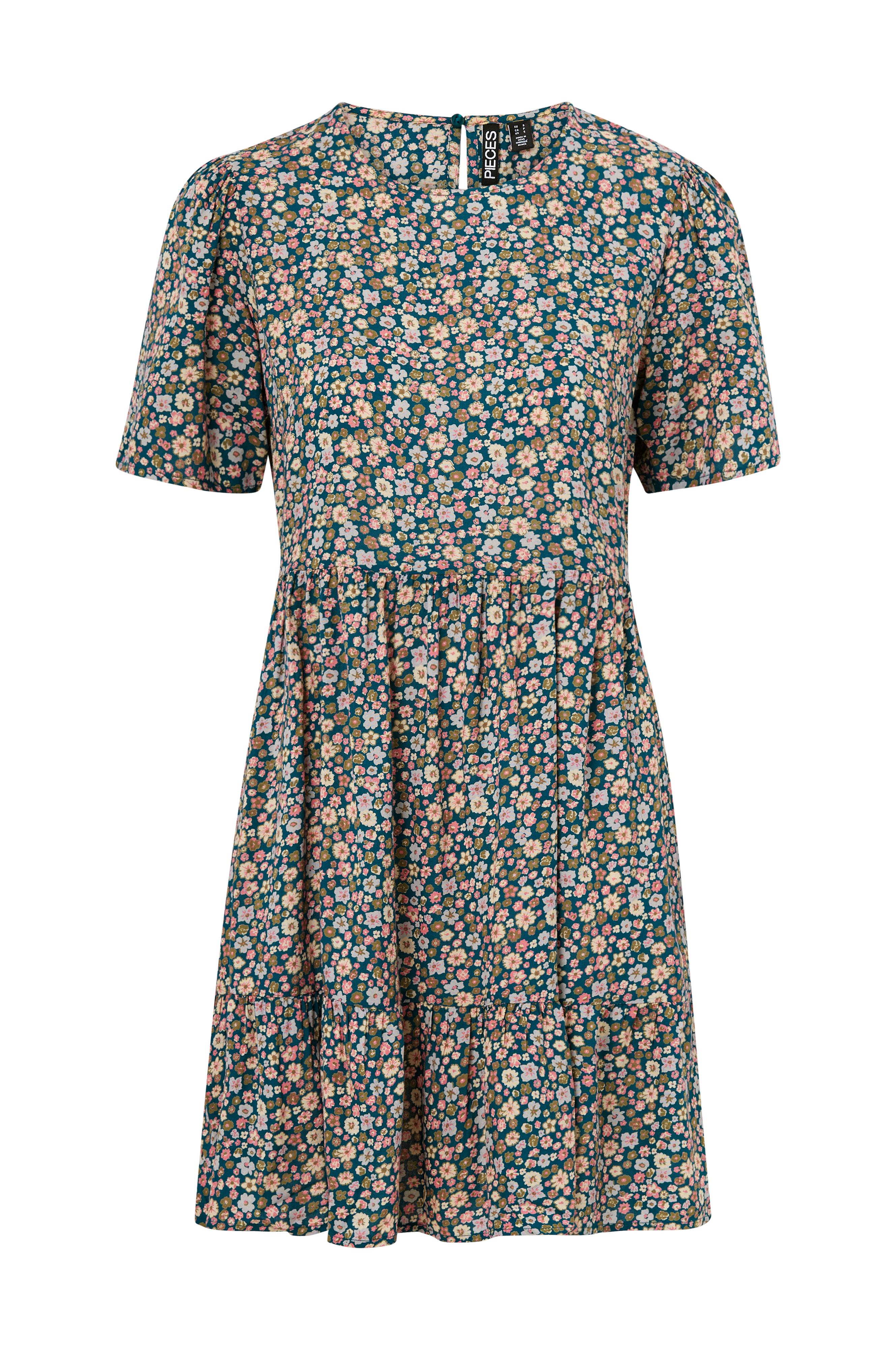 • Kjole i viskose• Kort, utsvingt modell• Korte bobleermer• Ventilasjon med knapp i nakken• Lengde: 90 cm i størrelse S