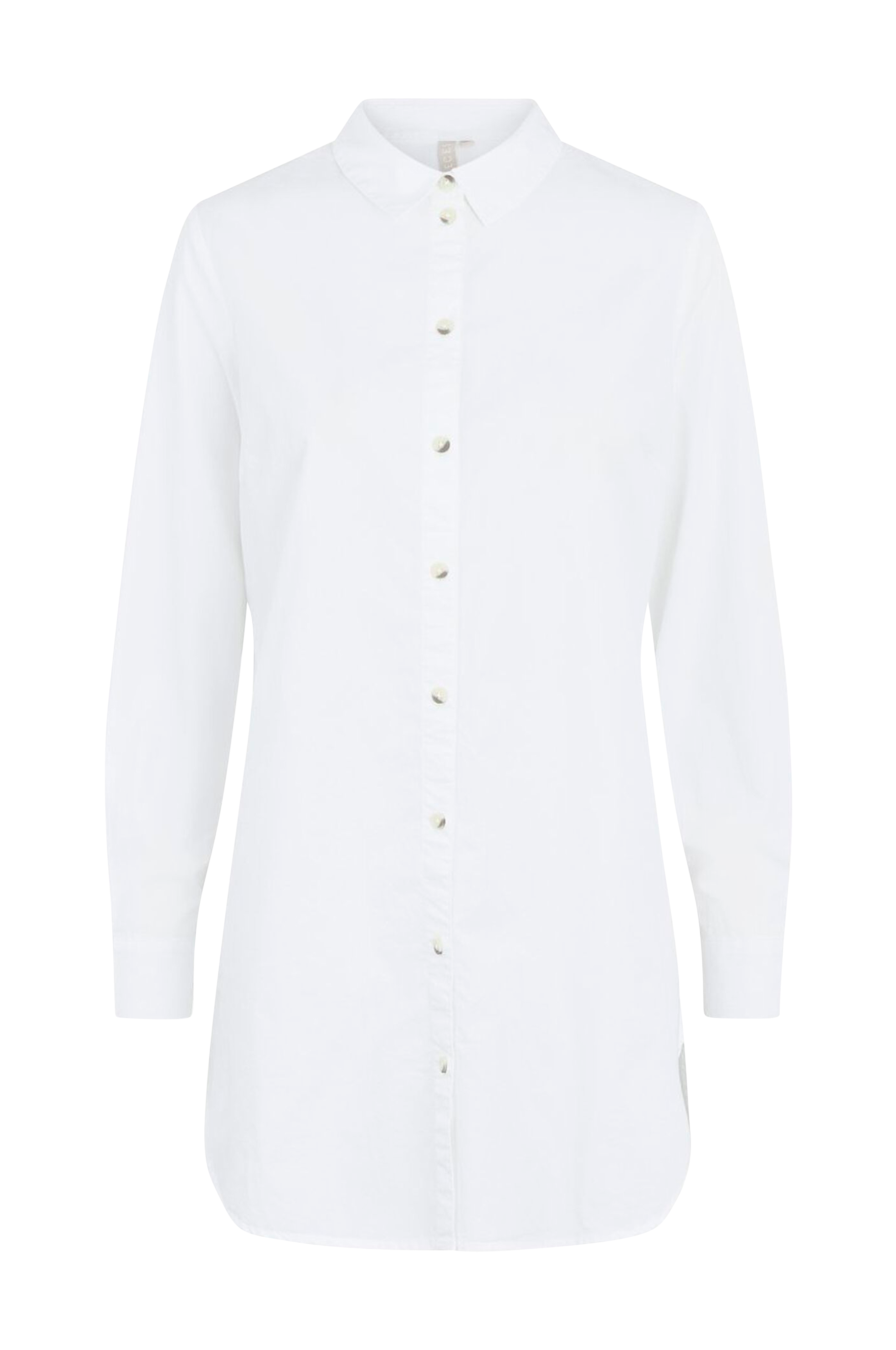 Langskjorte pcNoma LS Long Shirt fra Pieces. Lang, rett oversizemodell med liten krage og knapping hele veien foran. Avskåret skulderbærestykke med rynker bak og mansjett i ermekantene, samt rundskåret splitt nederst i sidene.