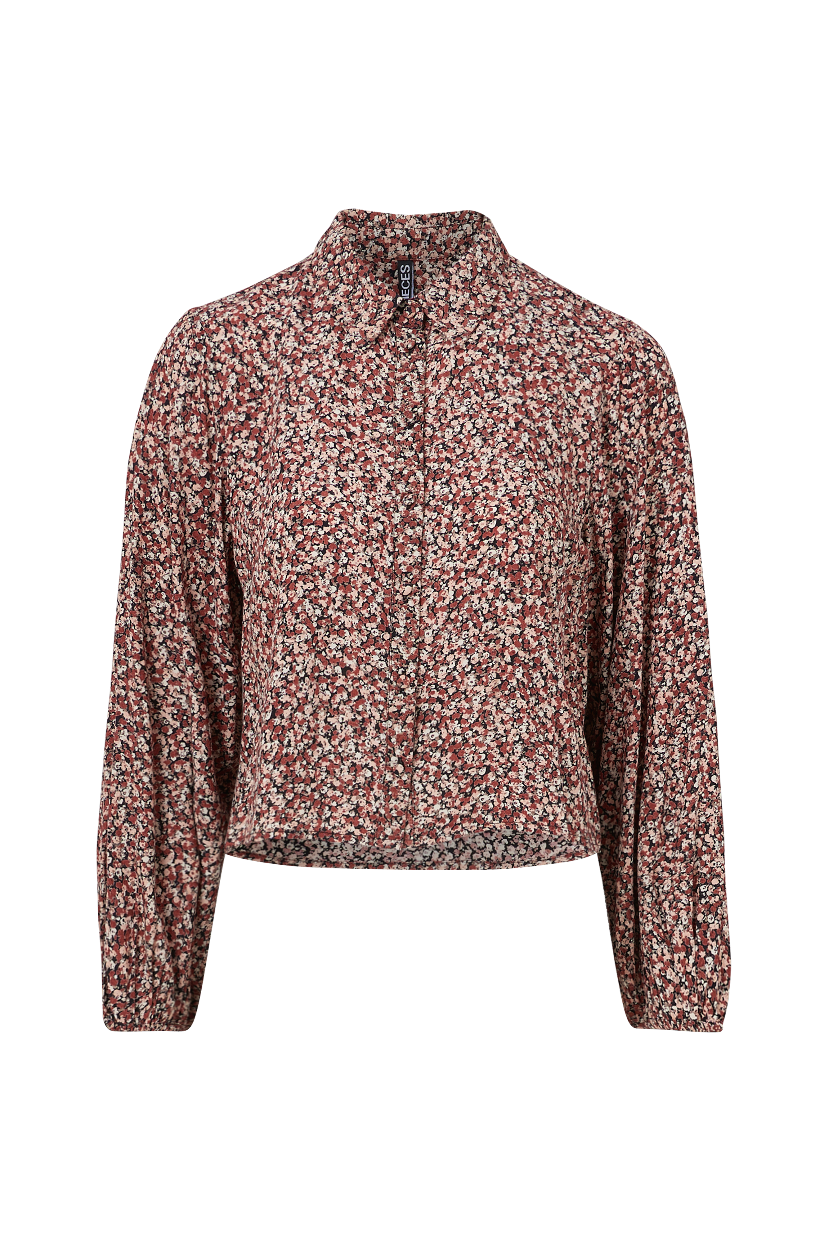 Skjorte pcDora 7/8 Shirt fra Pieces. Rett modell med ekstra lange, vide ermer med innfelt strikk i ermekantene. Liten krage og knapping med kledde knapper foran.