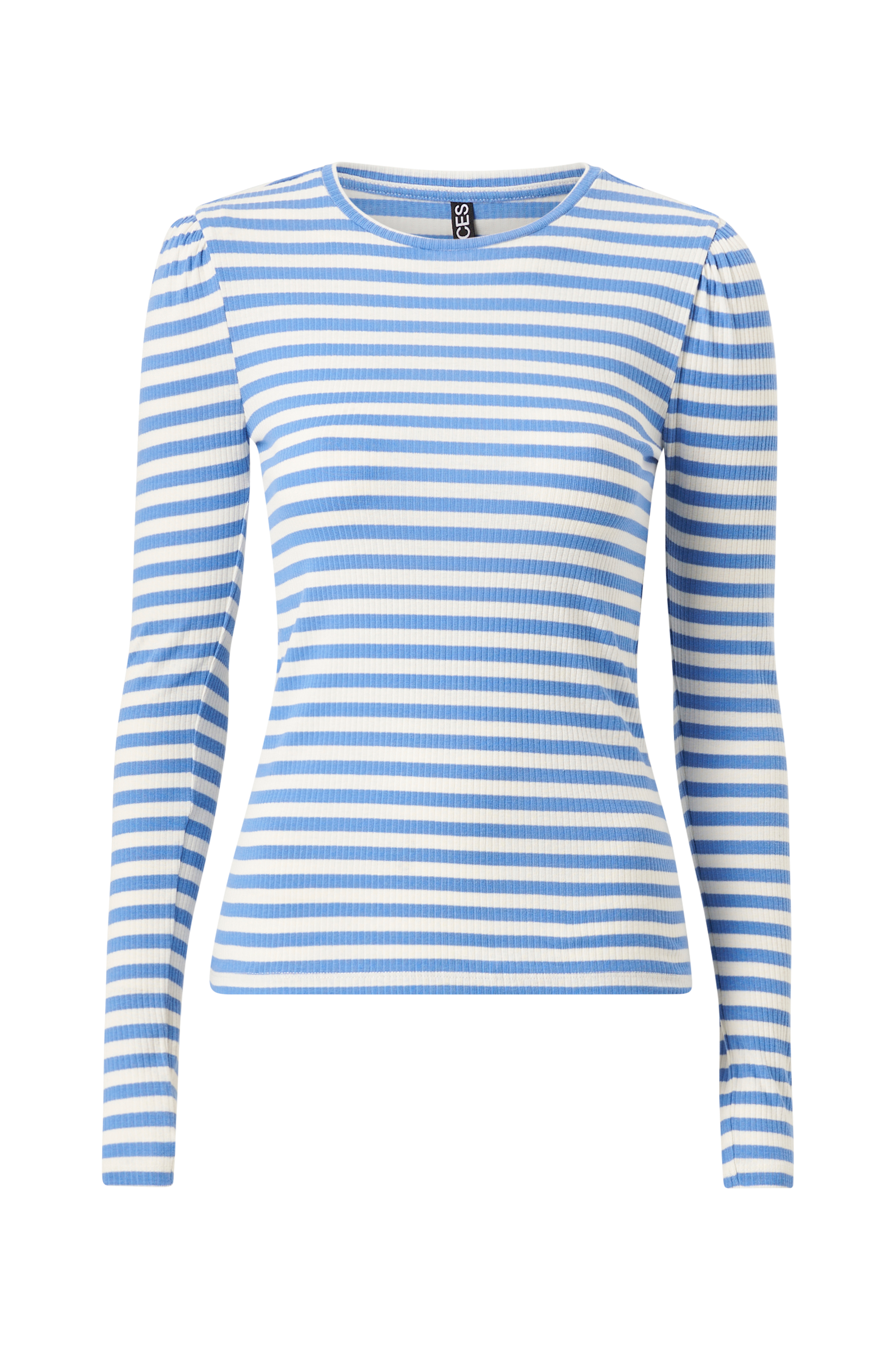Topp i ribbestrikket bomullstrikot med lange ermer med lett puff på skuldrene.