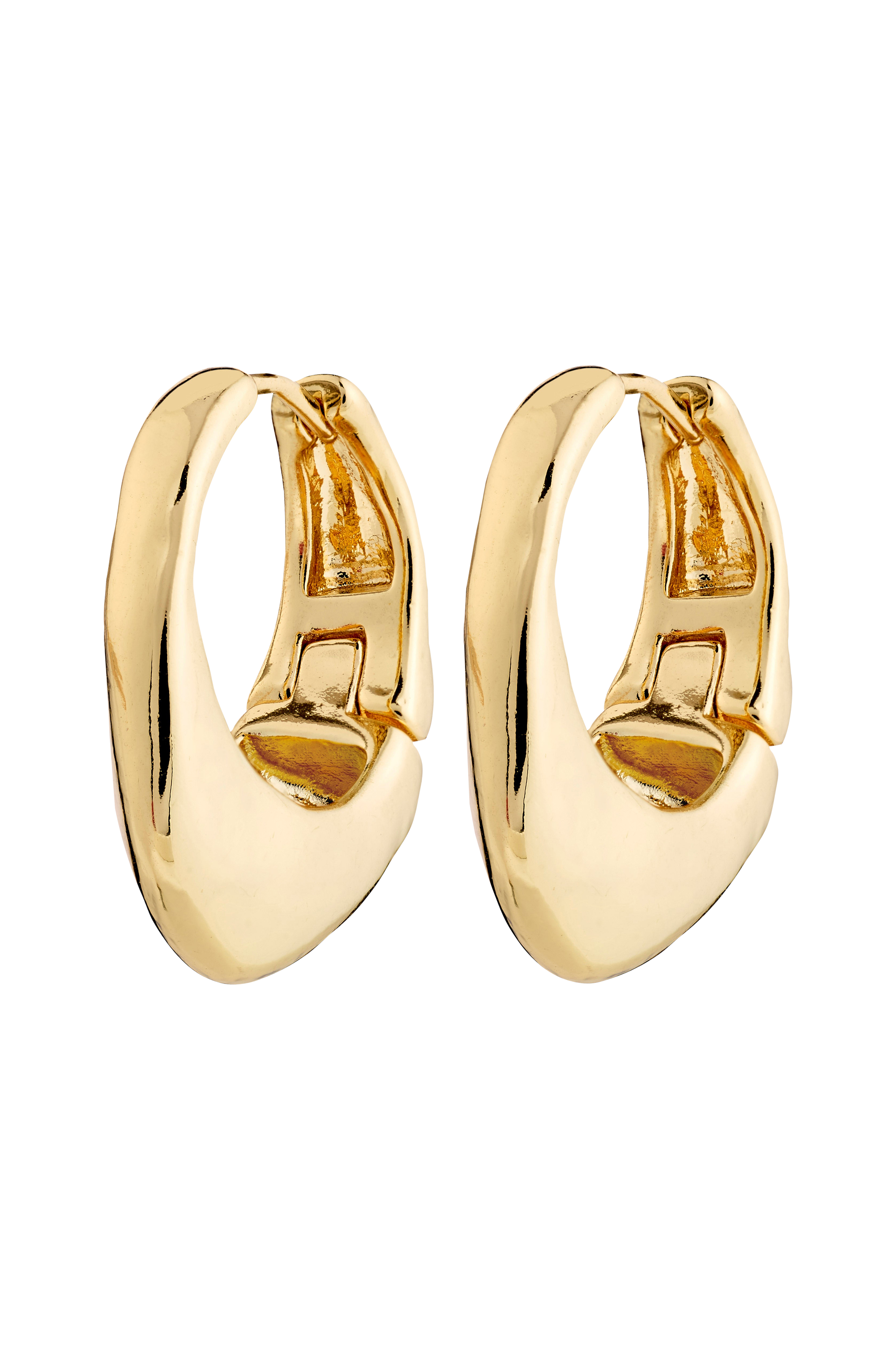 Gå på nye eventyr med de chunky hoopsene fra Pilgrims Imagination -kolleksjon. Et sett gullbelagte hoops med en stilig, skinnende finish og en vakker, myk form som fanger lyset og gir oppmerksomhet til looken din. Gjør hver dag fabelaktig med sesongens must-have! Øredobbene er laget av 99 % resirkulerte materialer og har enkle klikklåser som gjør dem enkle å bruke.