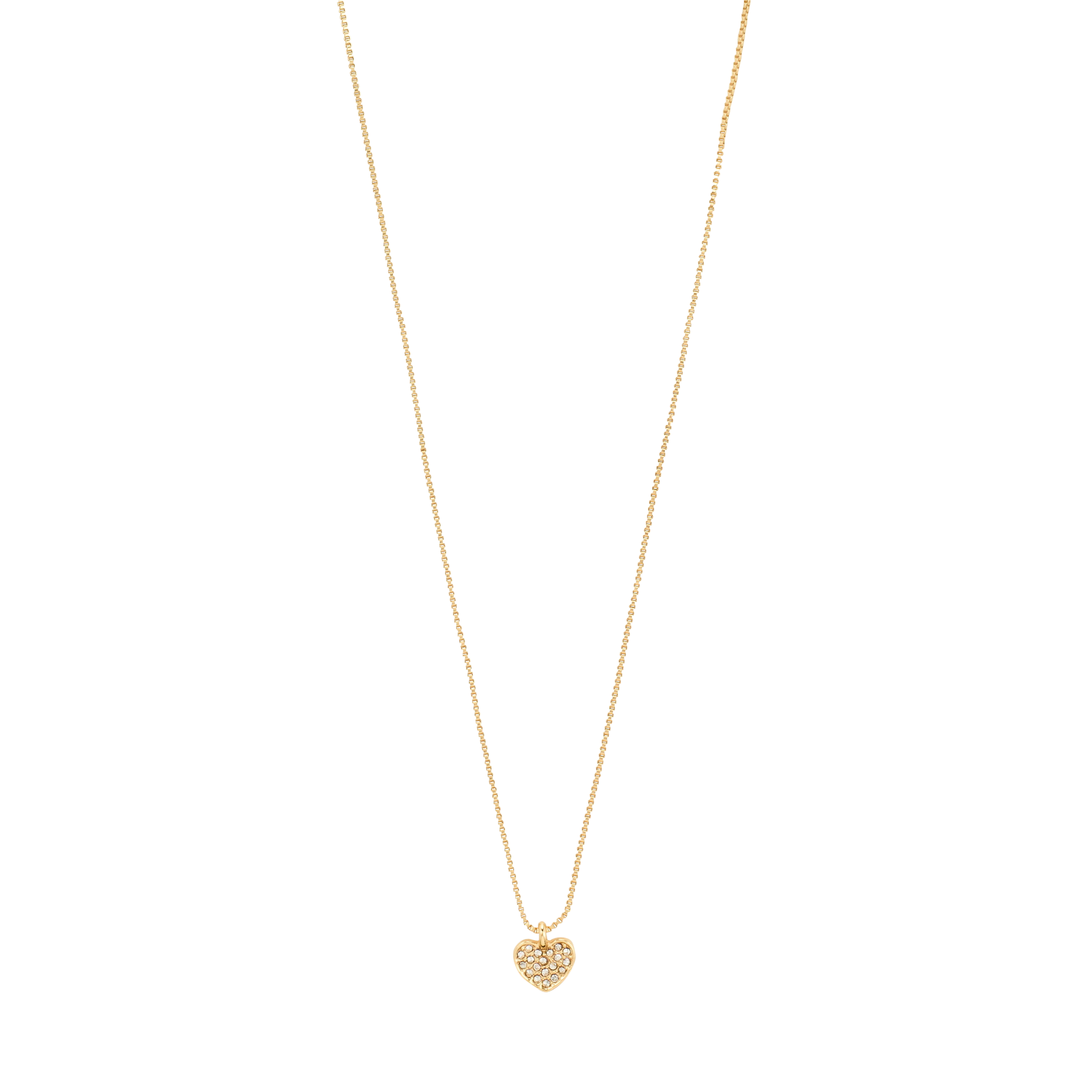 Bær hjertet ditt med glitter! Dette elegante gullbelagte halskjedet har et lite hjerteanheng prydet med blendende Preciosa-krystaller, noe som gir et romantisk og sofistikert uttrykk til looken din. Halskjedet er ideelt både til hverdags og til spesielle anledninger, og gir akkurat passe mye glans. Bruk det alene for et diskret uttrykk, eller kombiner det med andre kjeder for en trendy look. Det perfekte smykket til enhver anledning! Halskjedet måler 40 cm med et 9 cm langt forlengerkjede, og er laget av 97 % resirkulerte materialer, med kjærlighet til planeten vår.
