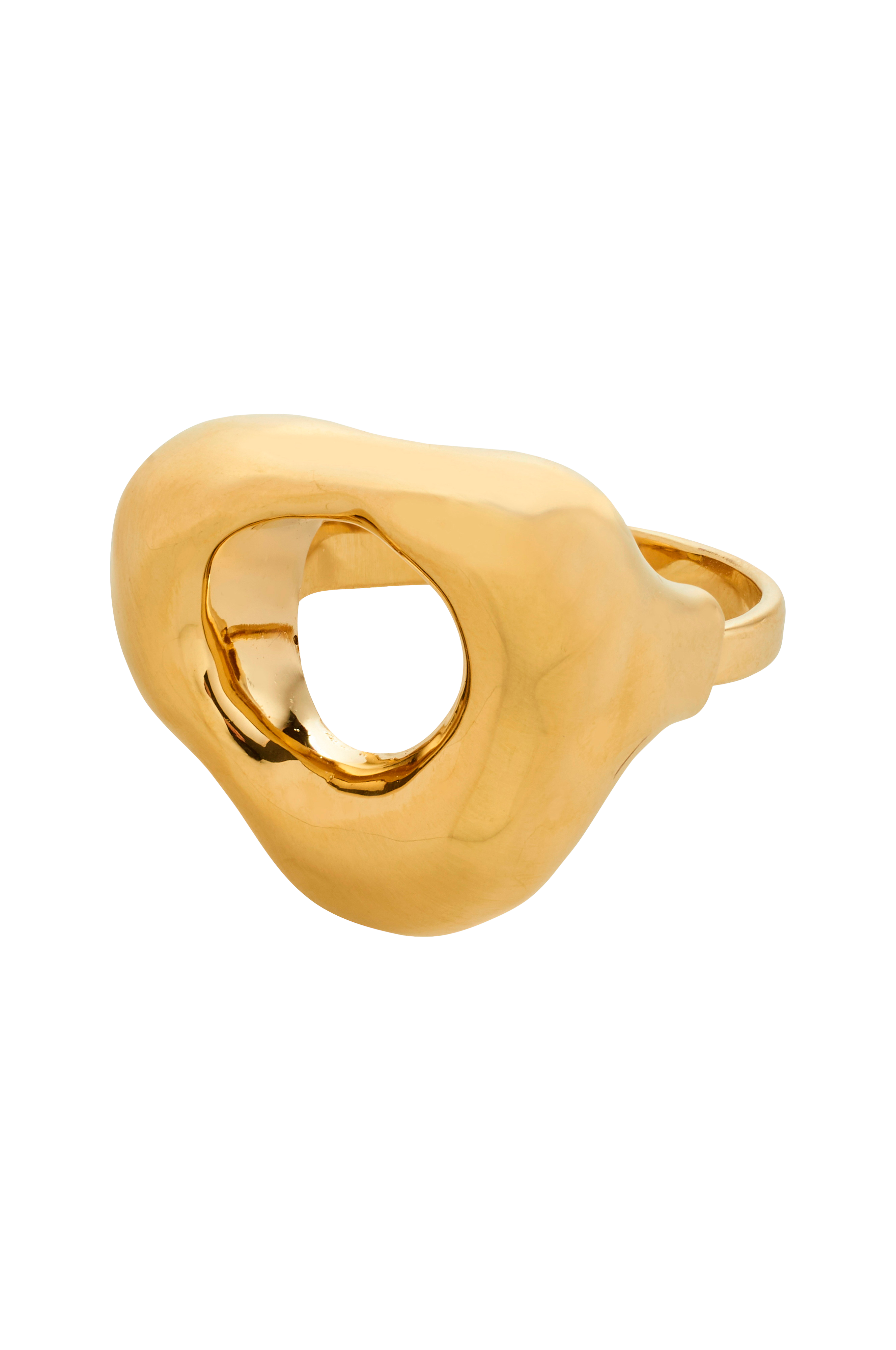 Slipp løs stilen din, føl deg free! La den gullbelagte ringen fra Pilgrims Free -kolleksjon bli ditt nye ikoniske statement-smykke. Inspirert av steiner på stranden og de naturlige formene som dannes av tidevannets bevegelser, har denne ringen et rått, organisk design. Med sin blanke overflate og unike design som minner om mystiske hagesteiner, utstråler ringen urban klasse. Den justerbare størrelsen garanterer en perfekt passform og gir både komfort og attitude. Sesongens must-have-tilbehør! Laget av 99 % resirkulert materiale med omtanke for vår fantastiske planet.