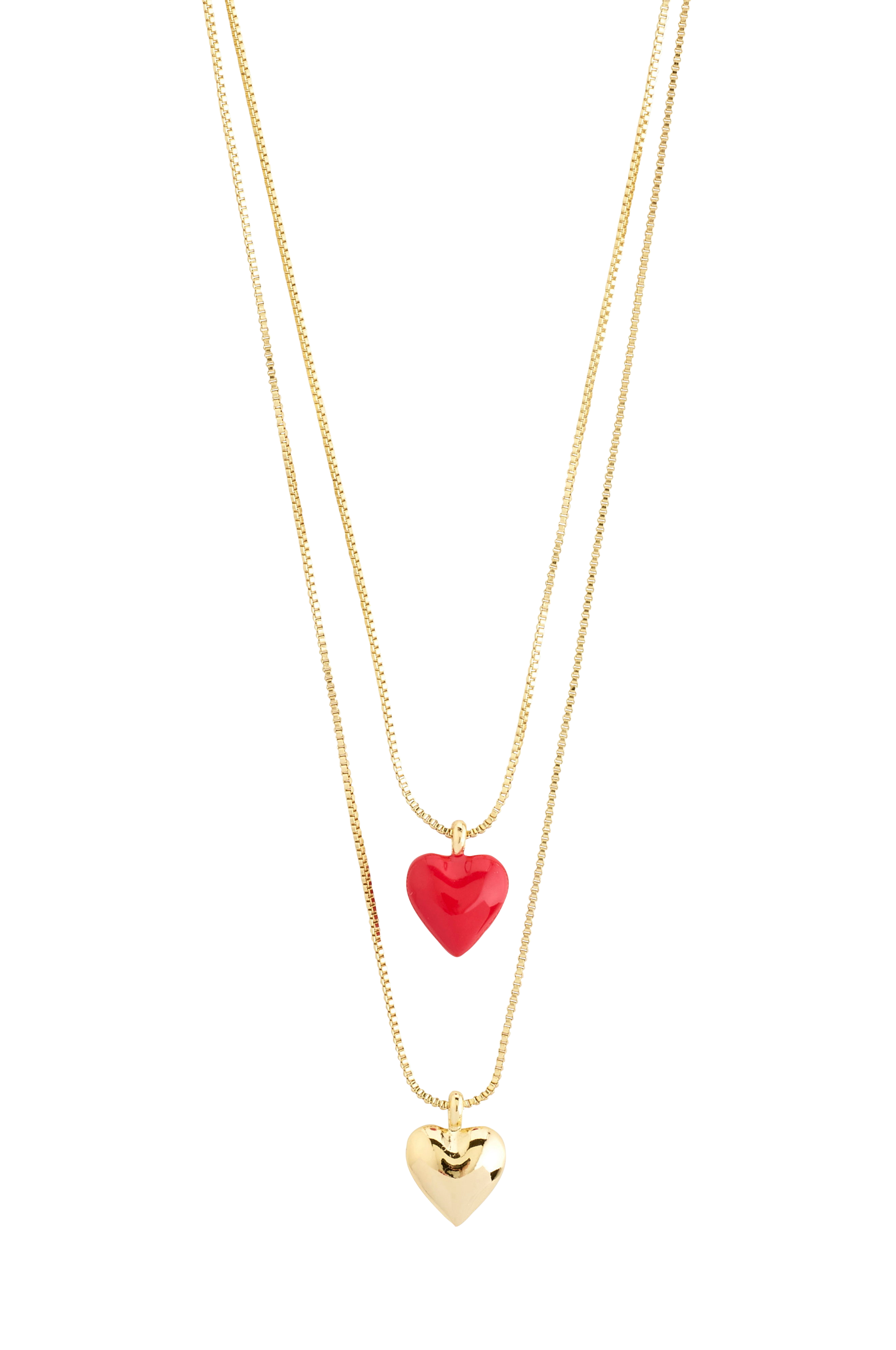 Vis frem kjærligheten din med Pilgrims gullbelagte hjertehalskjeder! Oppdag vårt 2-i-1-kjedesett med to klassiske, slanke bokskjeder. Velg mellom et gullbelagt, puffy hjerteanheng eller et hjerteanheng i rød emalje. Disse halskjedene er søte og enkle, og er et must-have for sesongen. De er den perfekte snarveien til en elegant og uanstrengt look. Del settet med partneren din eller Bff, eller miks og match for en morsom, lag-på-lag-look. Kjedet måler 36/42 cm med 9 cm forlengerkjede og er laget av 97 % resirkulerte materialer, slik at du kan føle deg trygg på ditt motebevisste valg.