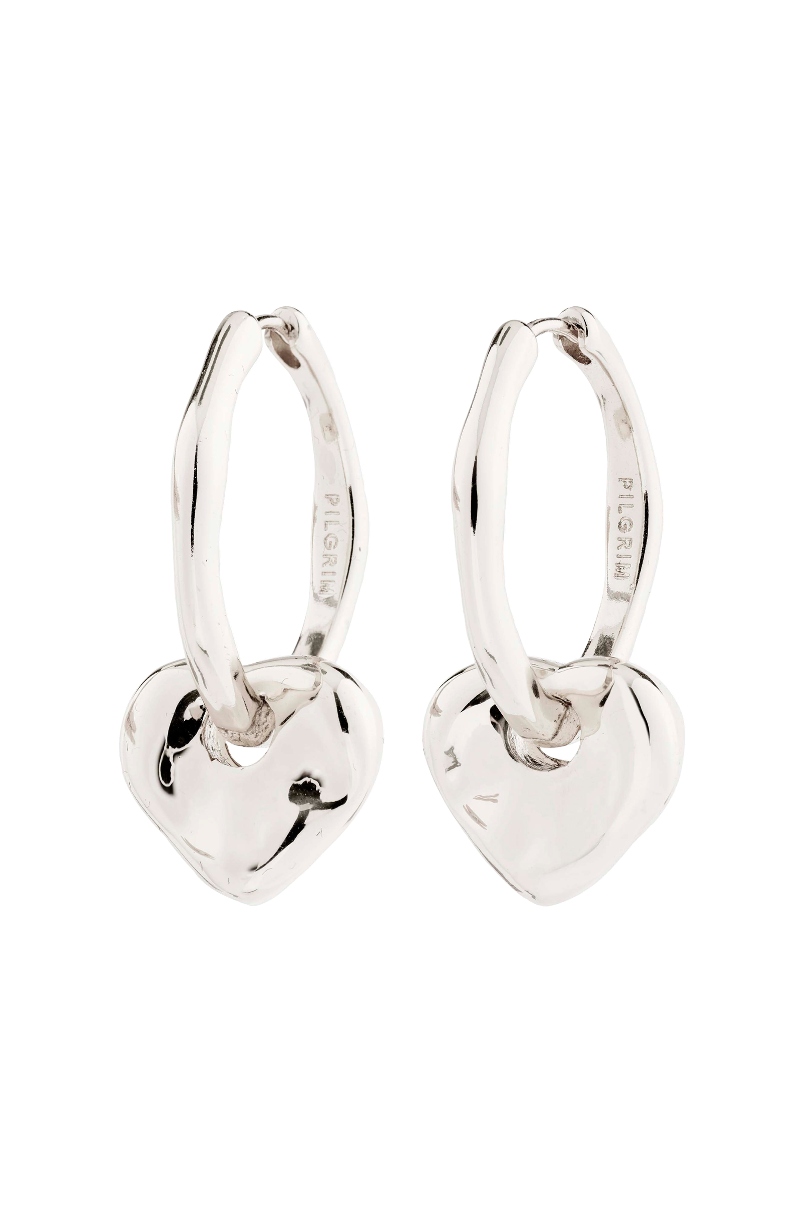 • Runde øreringer med dekorative hjerter• Uregelmessig form• Sølvbelagt materiale