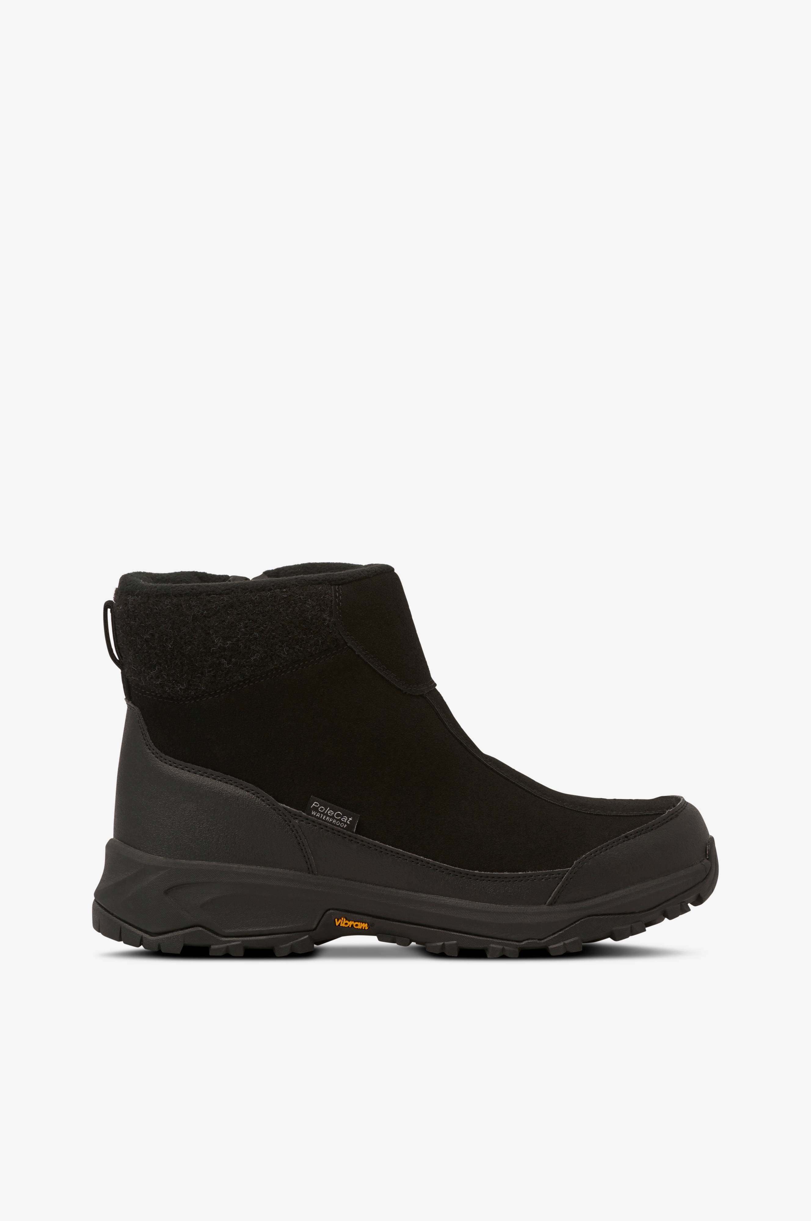 Boots fra Polecat i solid og komfortabel modell som er vanntett og varmfôret. Overdel i syntet med TripleTex som er en vann- og vindtett membran som puster og tørker raskt. Varmende fleecefôr på innsiden. Skaftet er behagelig vattert og har glidelås på innsiden. Forsterkninger rundt tå og hæl. Vevd hempe bak. Yttersålen Vibram® Arctic Grip er helstøpt i solid gummi med godt grep på glatt underlag. Uttagbar innersåle.