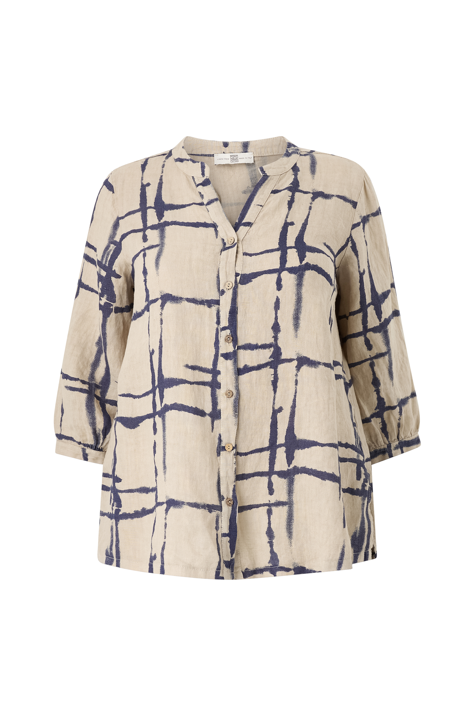 • Bluse i lin med ermer 3/4 lang• V-formet hals• Knapper foran• Skjær nede i sidene• Pluss-størrelser