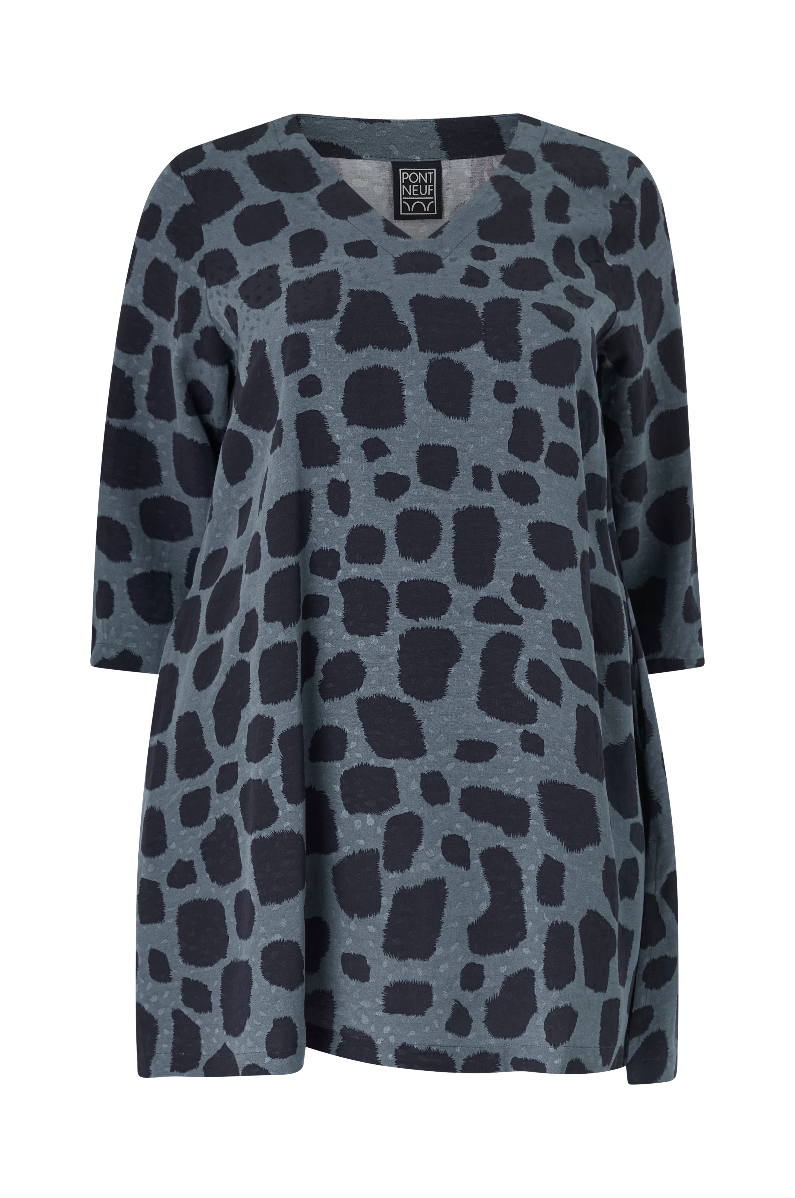 • Mønstret tunika• Ermer 3/4 lang• V-formet hals• Sidesplitt på bunnen• Sidelommer• Pluss-størrelser• Lengde: 91 cm i størrelse M