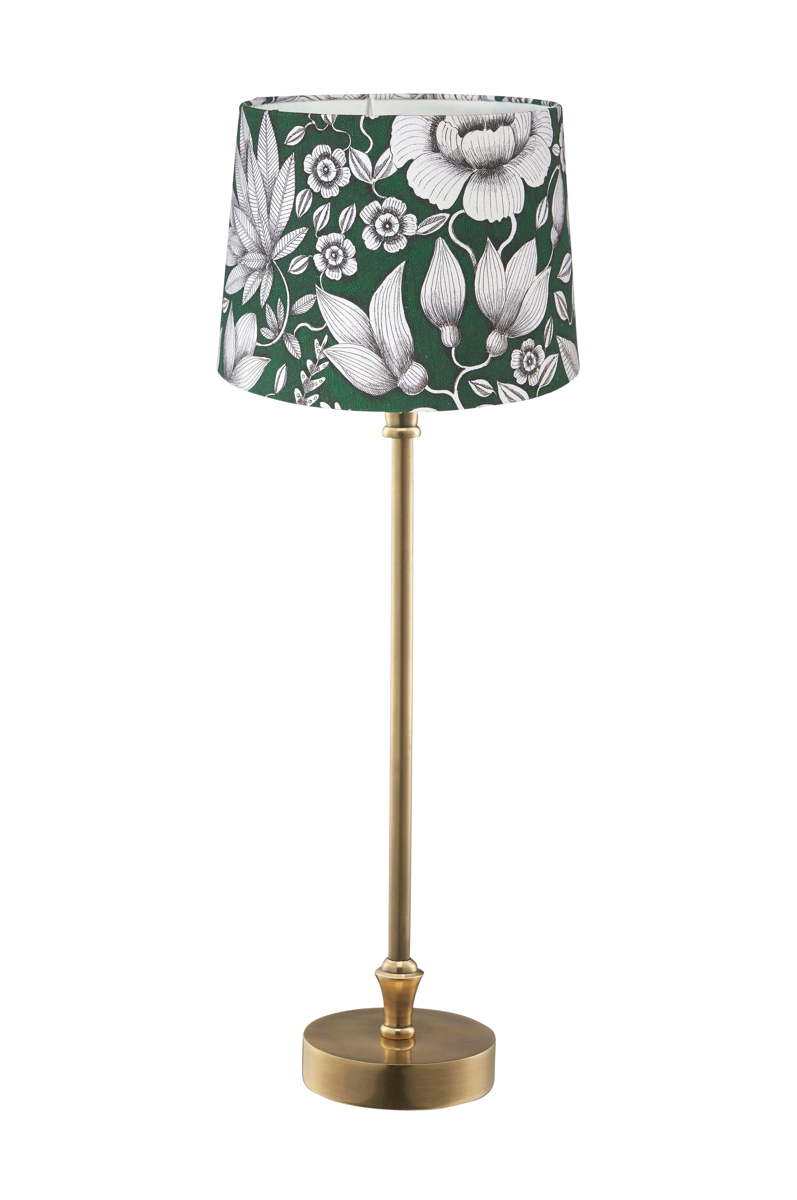 Liam lampefot i metall med lampeskjerm Sofia med rund og svakt kjegleformet fasong. Mål lampefot: Høyde 46 cm. 1,5 m svart plastledning med strømbryter ca. 30 cm fra lampen. E27-sokkel. Maks 40 W. IP20. Lyspære er ikke inkludert. Mål lampeskjerm: Høyde 15,5 cm, bredde nederst 20 cm, bredde øverst 17 cm. Skjermen har E27-ringfeste ca. 3,5 cm fra bunnen.