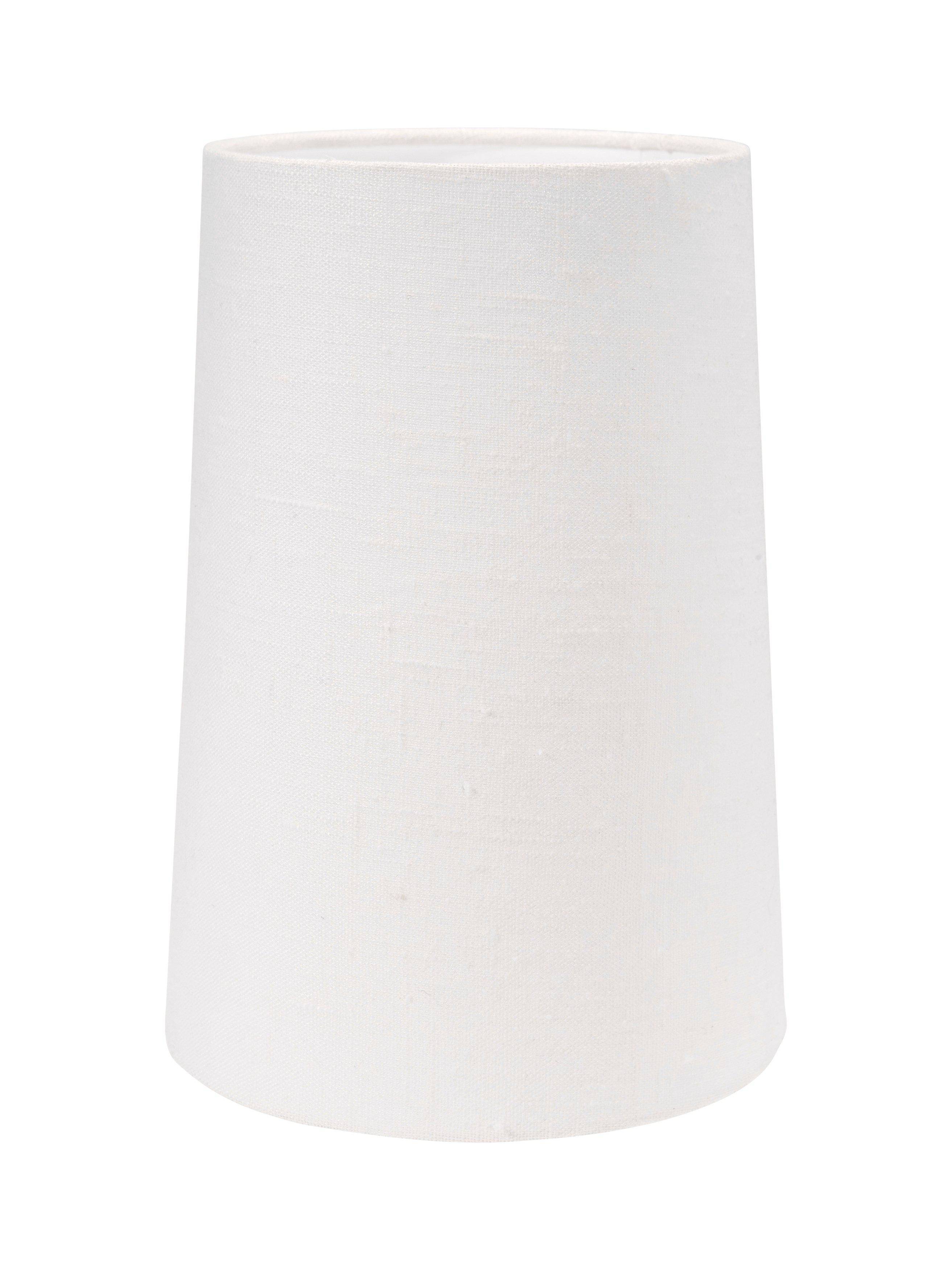 Annie lampeskjerm i linstoff. Skjermen har rullede kanter og innbrettet skjøt som skaper en luksuriøs følelse av solid håndverk. Skjermen er sylinderformet og har hvit laminat som gir et fint lysskinn når lampen er tent. E27 sokkel som sitter 4 cm fra bunnen. Høyde 28 cm, diameter 20/16 cm.