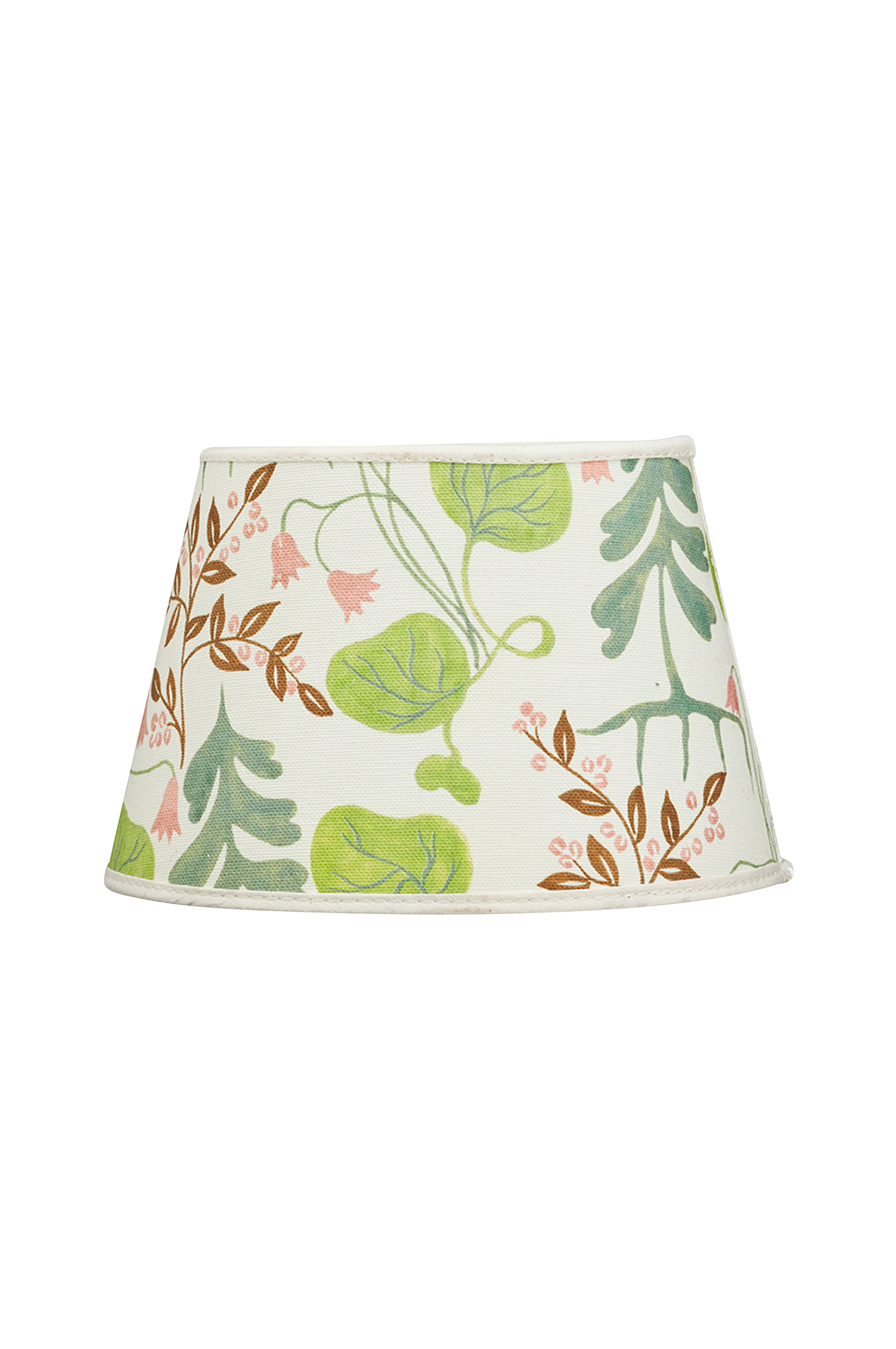 Lampeskjerm Indi er en oval lampeskjerm og her med vårt unike, vårlige stoff Linnea i bomull fra Joy Zandén. Lampeskjermen har lys innside, og leveres med klofeste. Høyde 15 cm, bredde nederst 24 cm, øverst 17 cm. Dybde nederst 18 cm, øverst 11 cm.