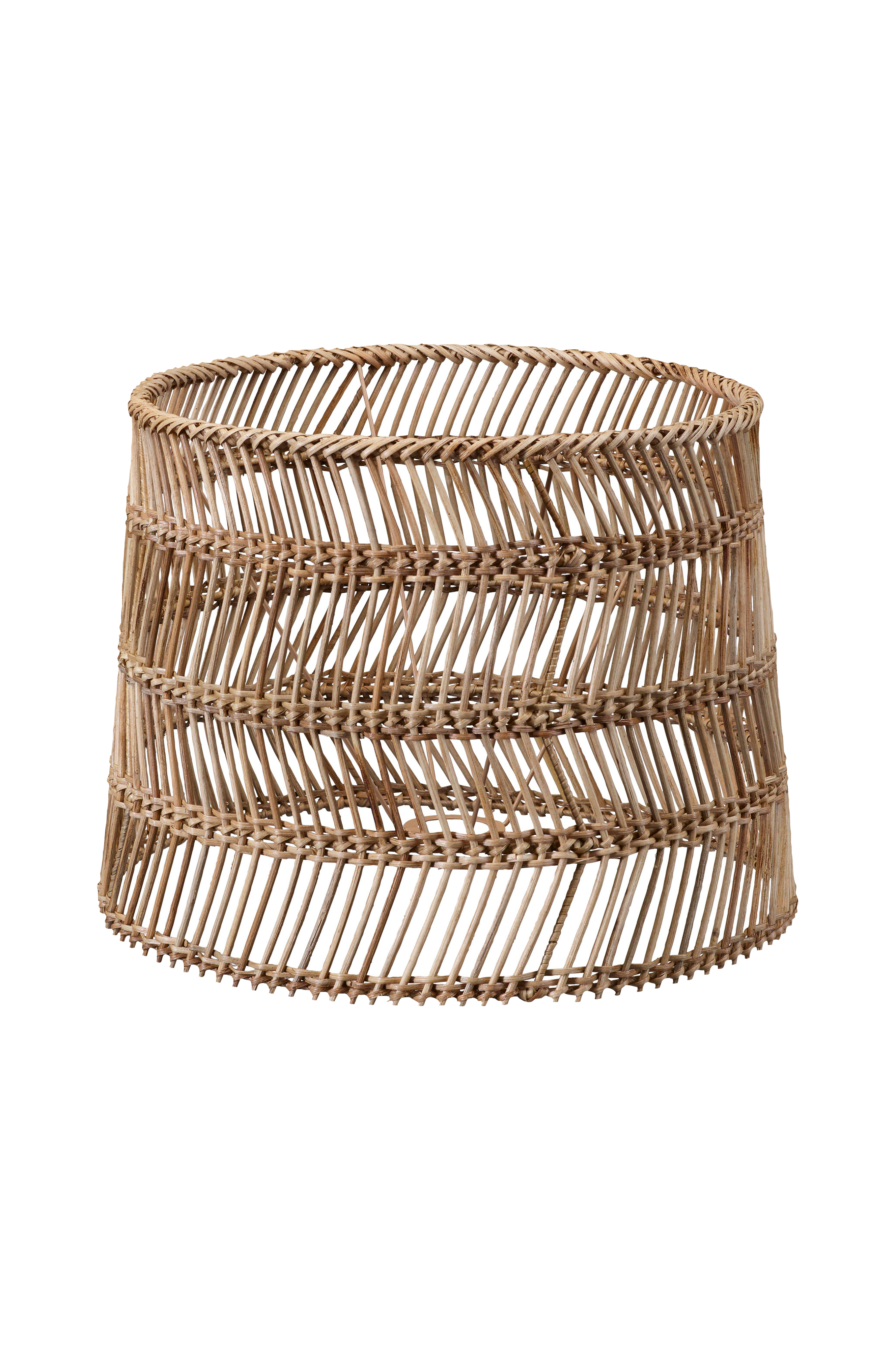 Lampeskjerm Maja i tvinnet naturrotting. Høyde 30 cm, diameter 40 cm nederst og 35 cm øverst. Skjermen har E27 ringfeste. Naturmaterialet kan variere i farge. Hver skjerm er håndlaget, og det kan være små forskjeller i størrelsen.
