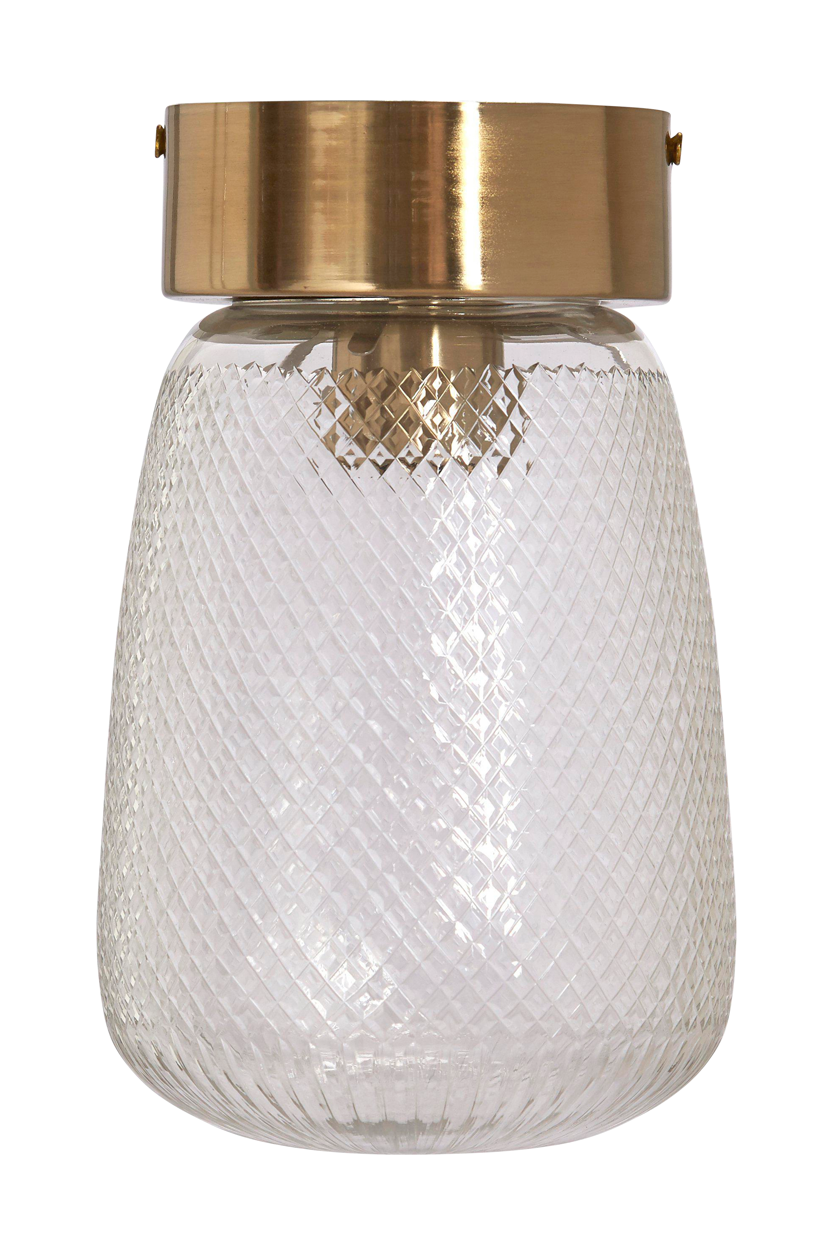 Taklampe Juliette er av messingfarget metall og har et håndslipt glass med et vakkert mønster. Taklampen er tilpasset lyskilder med E27-sokkel, og fungerer med både runde og pæreformede lyskilder med maks effekt 25W. Lampen er laget for fast montering, og leveres med koblingsboks uten støpsel. Høyde 20 cm, bredde 16 cm, dybde 16 cm. Lyspære er ikke inkludert.