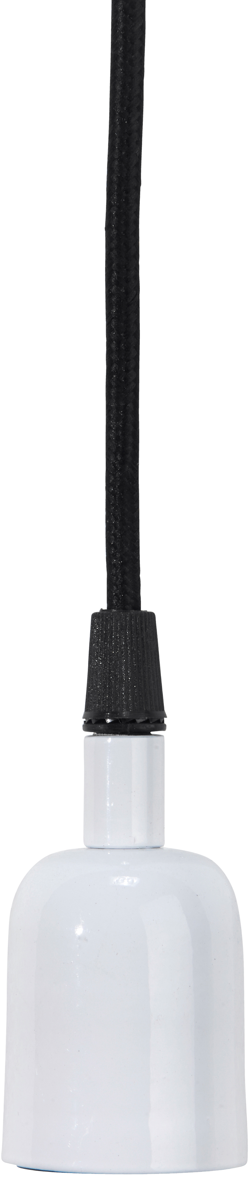 2 meter lang tekstilledning med takkontakt. Høyde 9 cm. Bredde 5 cm. Stor sokkel E27, max 40W.