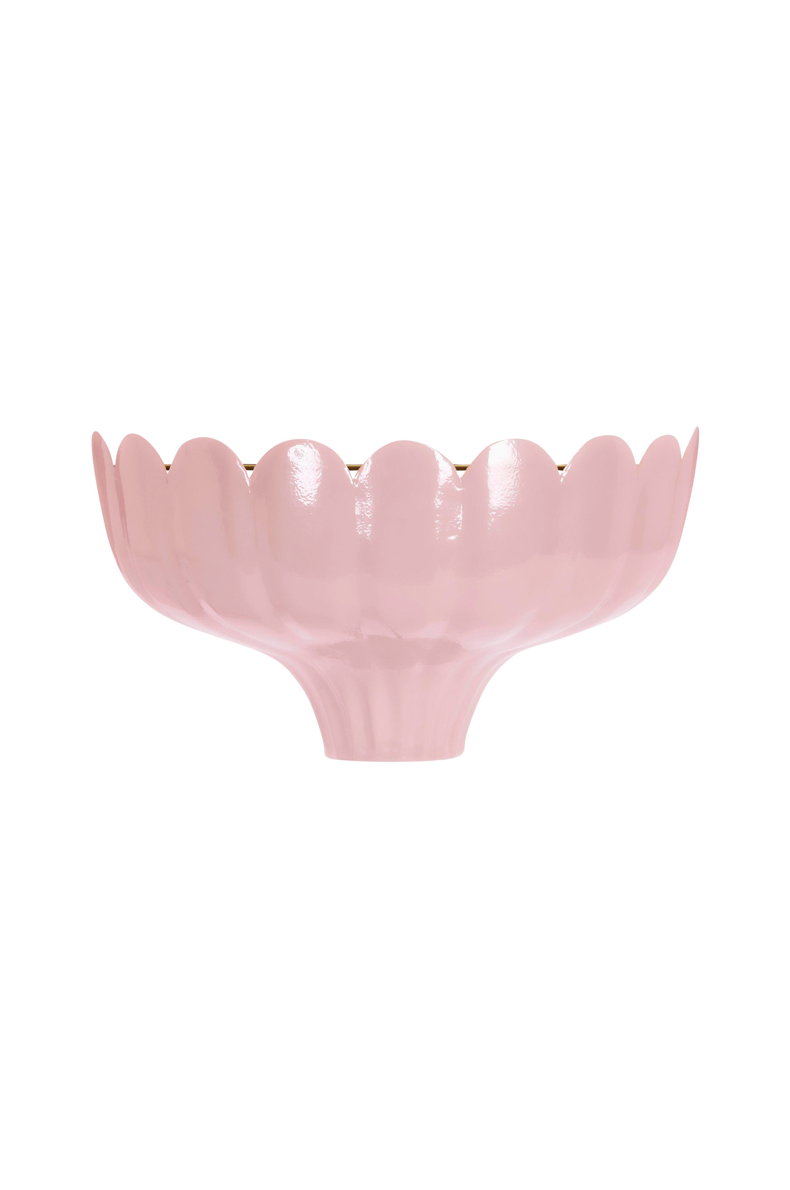 Vegglampe Wells Uplight er håndlaget av metall. Inspirert av en blomst gir denne lampen hjemmet en romantisk stil. Den gullfargede innsiden sprer et varmt lysskinn i rommet. Lampen har en svart plastledning som er 180 cm. Strømbryteren sitter ca. 30 cm fra skjermen. Vegglampen er laget for lyskilder med E27-sokkel og maks effekt på 25W. Høyde 20 cm, bredde 36 cm, dybde 18 cm.