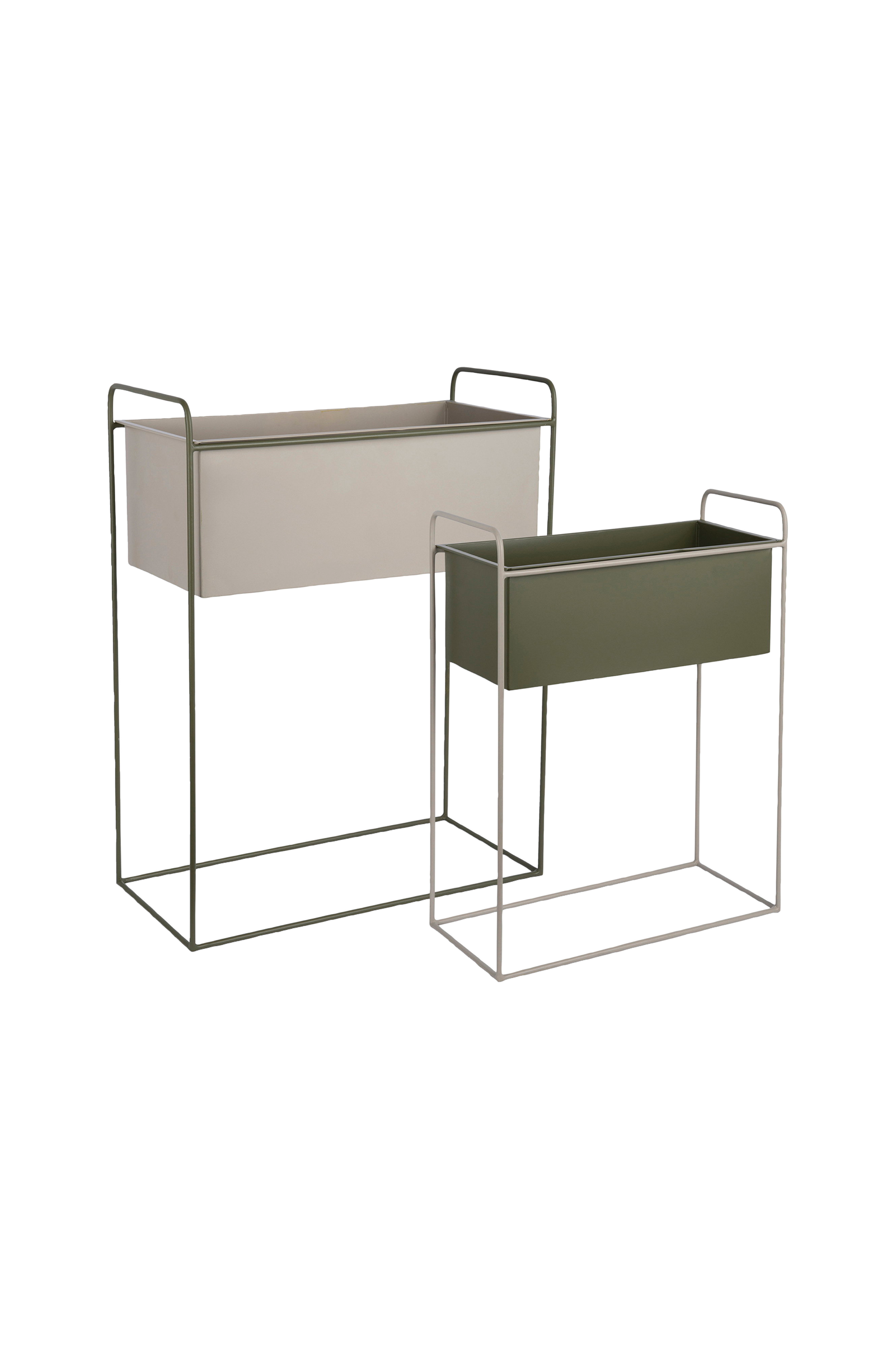 Present Time Reina består av to rektangulære krukker med en elegant og stilren design. Kombinasjonen av elegante stativer og robuste krukker gir settet et luksuriøst uttrykk. Ideelt for å vise frem planter i ulike høyder og skape et sammenhengende uttrykk. Laget av jern.