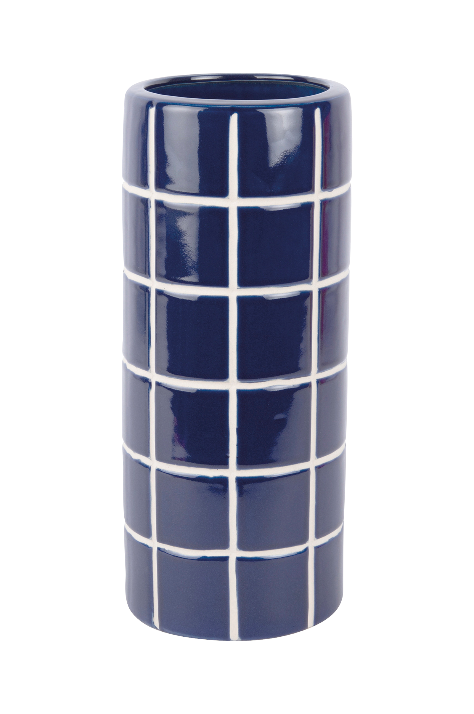 Den nåværende Retro Tiles runde mellomstore vasen har et karakteristisk retro flisedesign med et grafisk utseende.Den sylindriske formen gjør den til et passende dekorativt objekt, med eller uten blomster. Laget av keramikk.