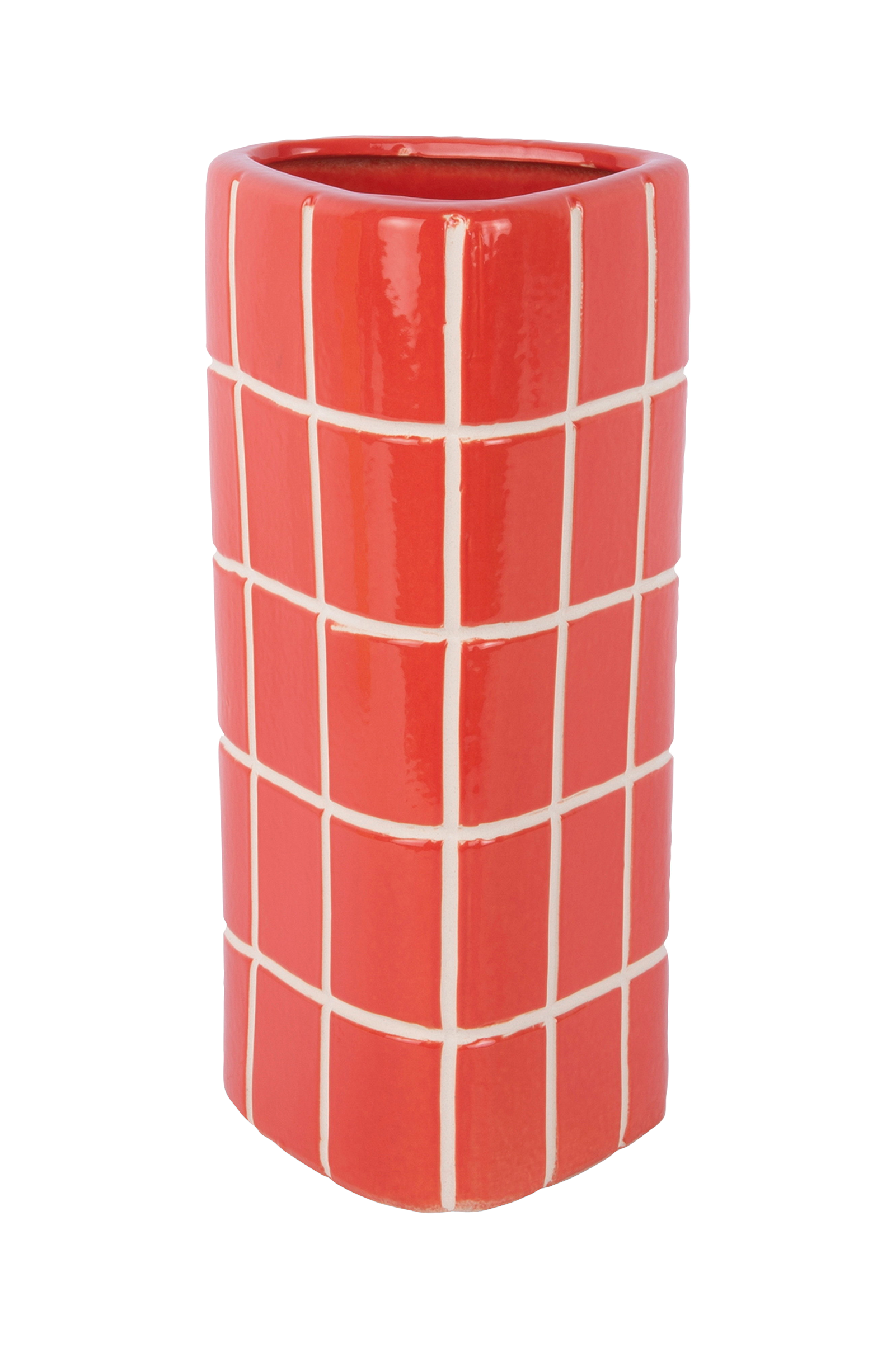Retro Tiles triangular medium vase fra present time har et slående retro flisedesign i en unik trekantet form.Det grafiske mønsteret gjør vasen til et kraftfullt dekorativt objekt. Laget av keramikk.