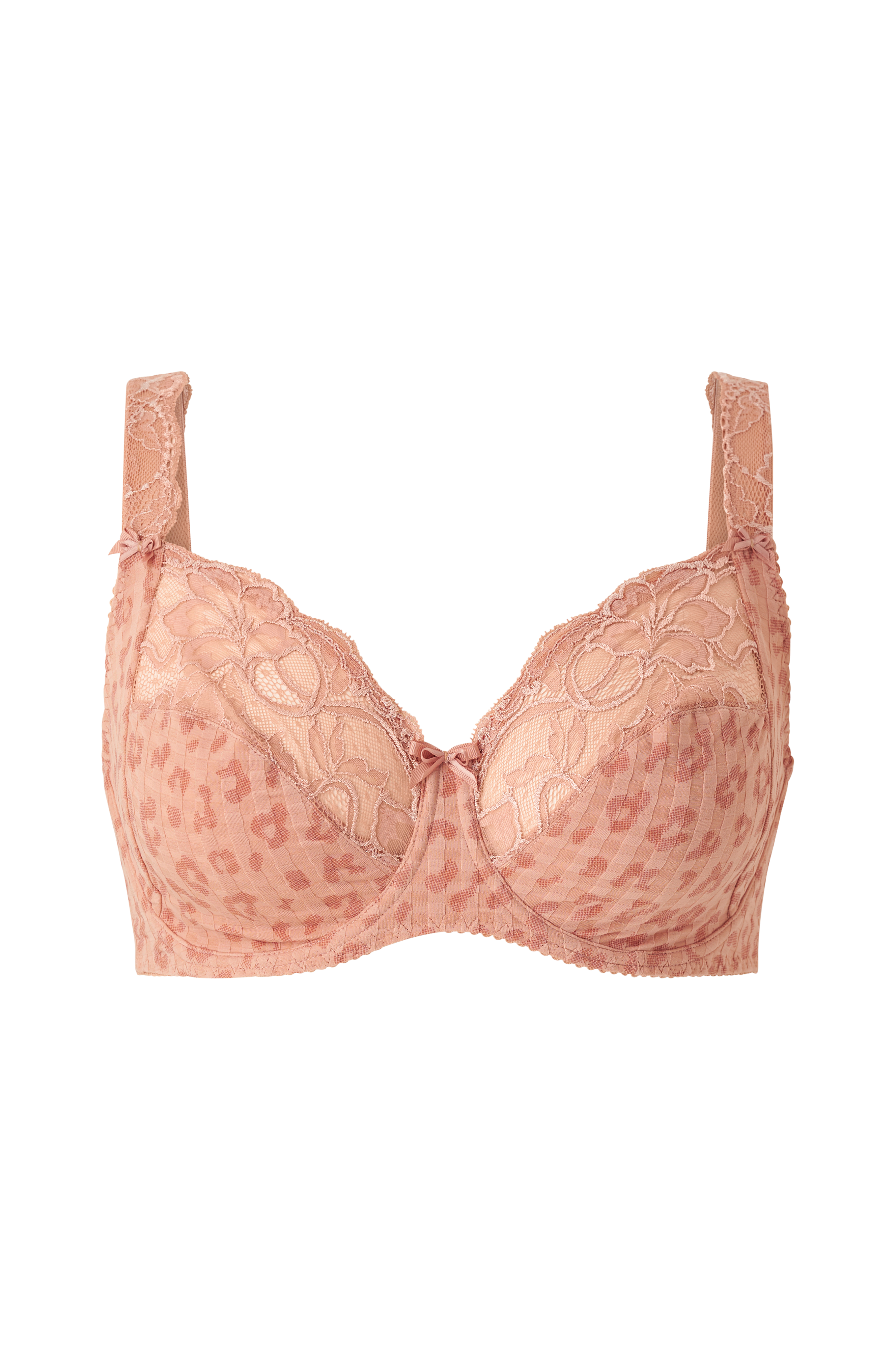 • Ikke polstret BH-en i myk, mønstret polyamidblanding med brakett og blondelag• Lukking med hekte og malje i ryggen• Justerbare, brede skulderstropper• Sløyfedetalj mellom koppene og på forsiden av skulderstroppene• Gummistrikk på underermene